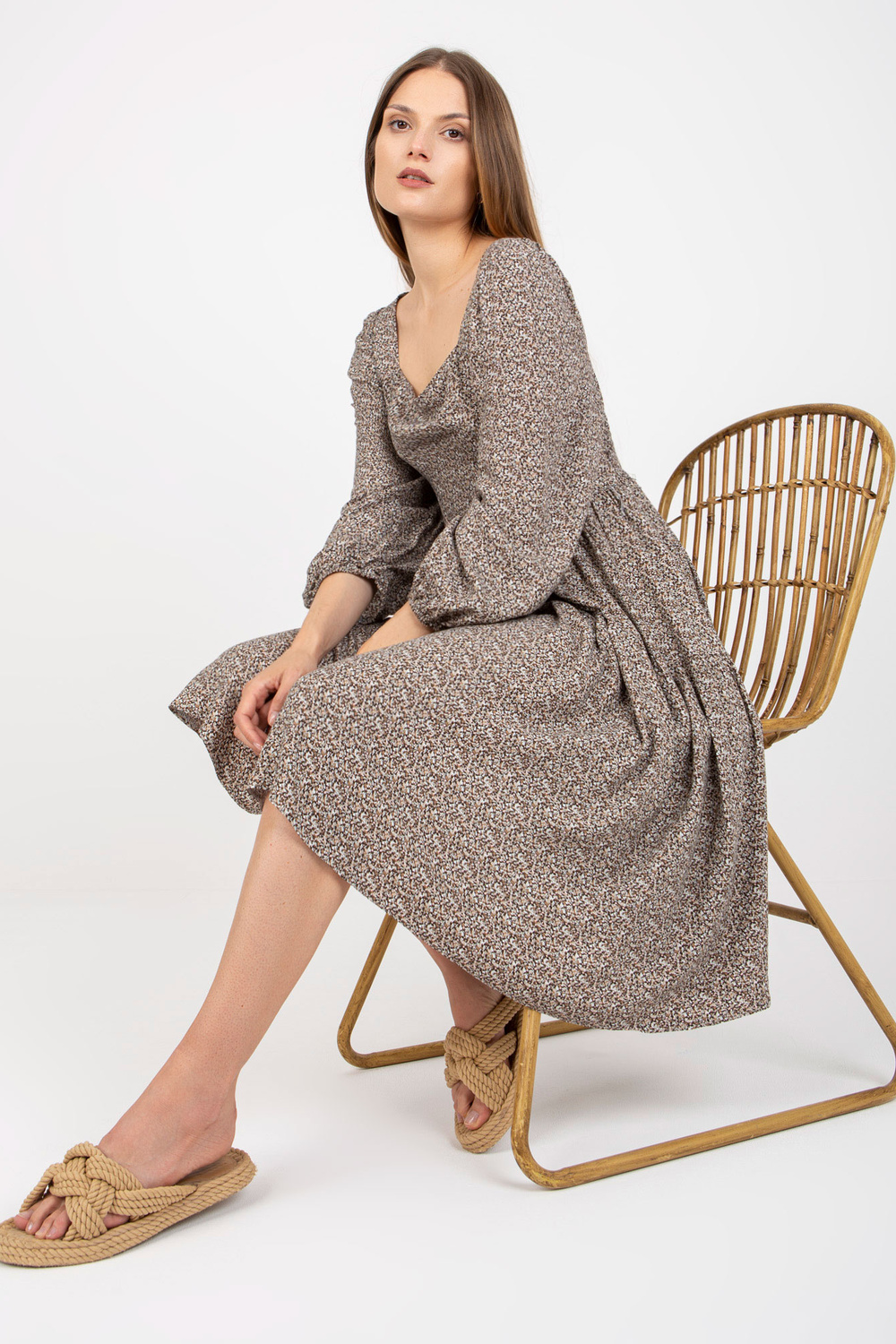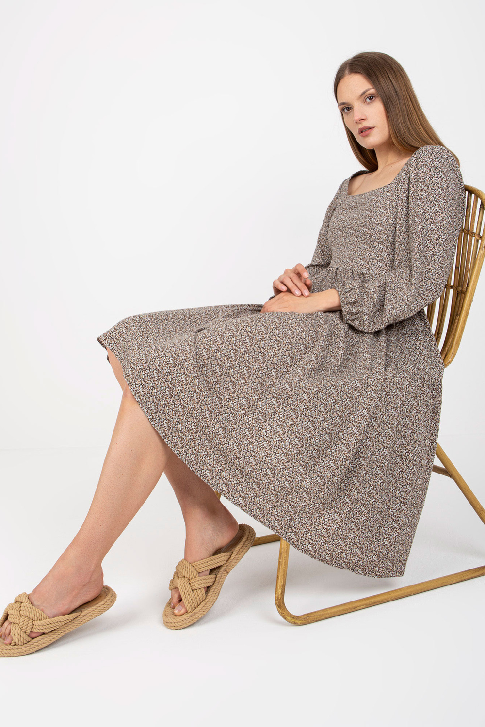 Bēša midi kleita ar viskozes apdrukām ZULUNA .