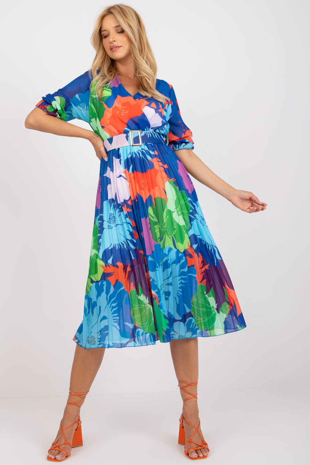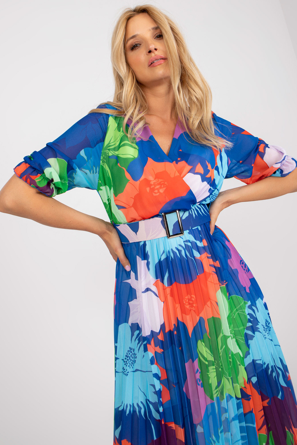 Zilas izmēra kleita ar apdrukām no OCH BELLA . Aksesuāri: elastīgs rievojums, odere, jostas materiālssastāvs: 70% poliesters, 30% viskoze Mazgāšanas metode: veļas mašīna 30°C Produkta kods: TW-SK-BI-1441.26 dominējošais raksts: apdruka Stils: ikdienišķs gadījums: ca