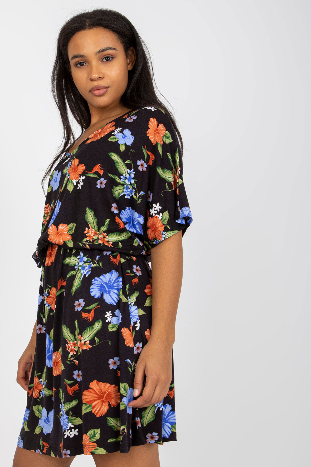 Melnzila mini kleita ar ziediem . aksesuāri: jostasvieta ar siksnām materiālssastāvs: 90% viskoze, 10% elastāns mazgāšanas metode: veļas mašīna 30°C Produkta kods: RV-SK-8078.80 dominējošais raksts: ziedi Stils: ikdienišķs Notikums: c