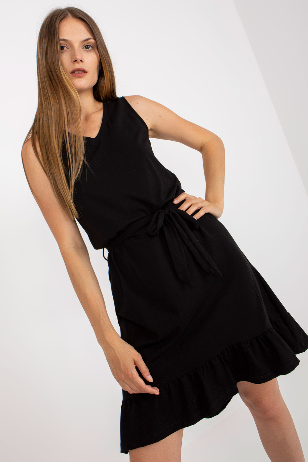 Melnas kokvilnas mini kleita ar kaklasaiti RUE PARIS .