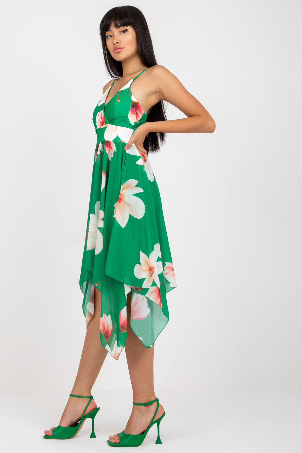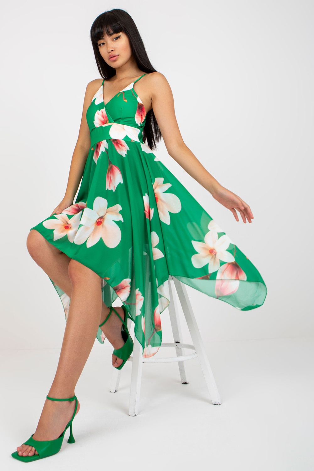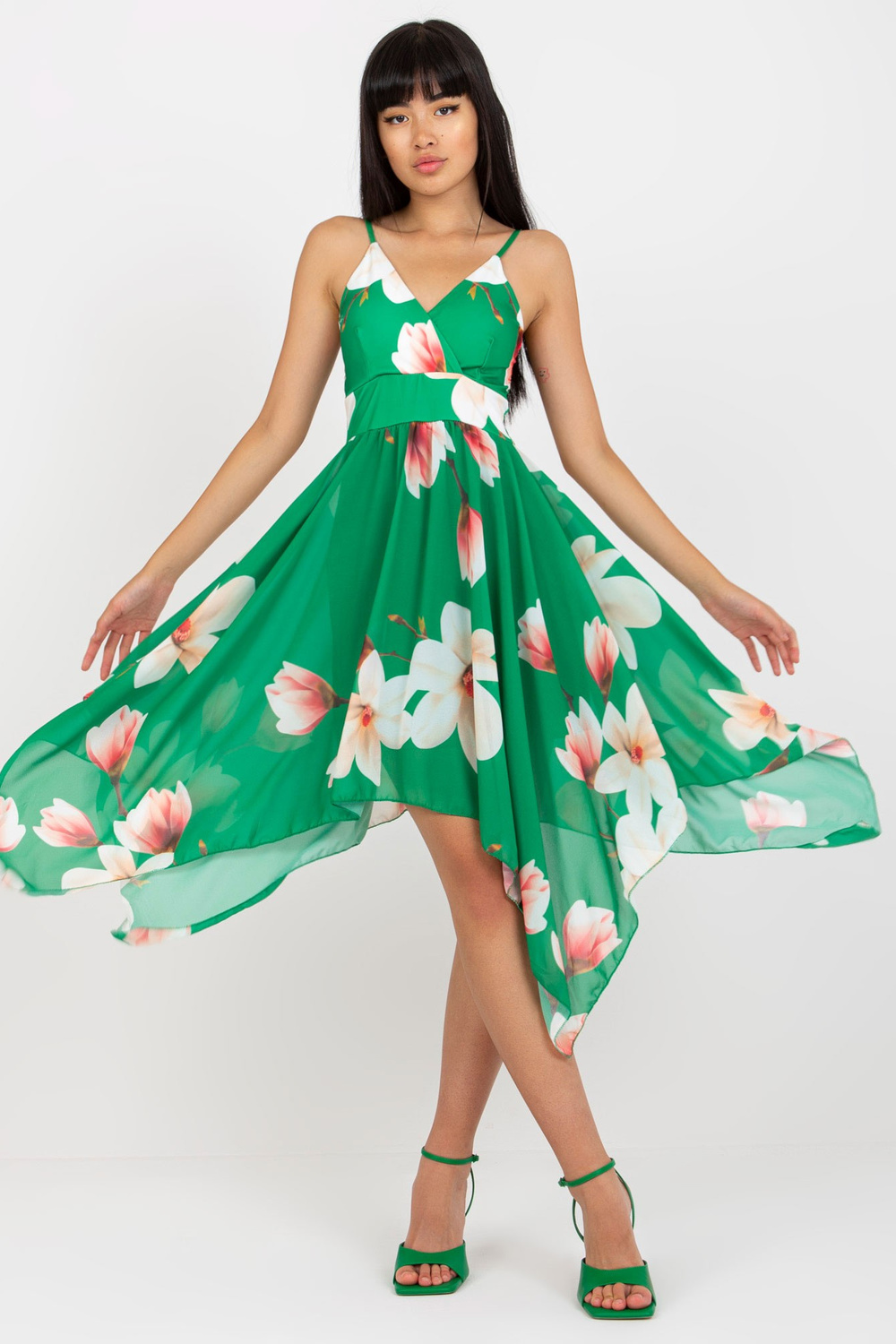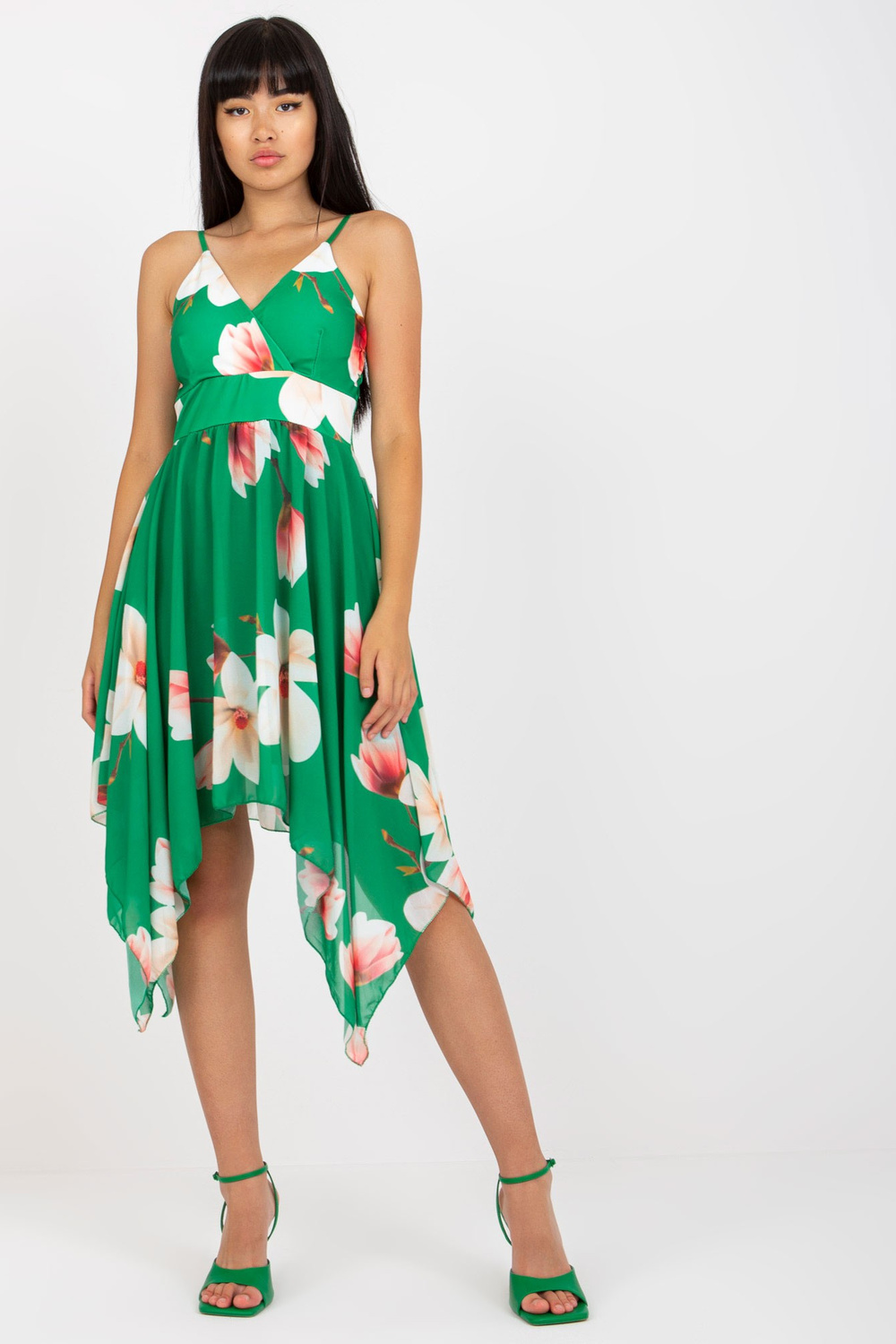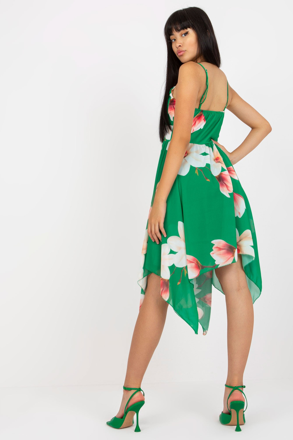 Zaļisimetriska kleita uz lencēm ar apdruku.