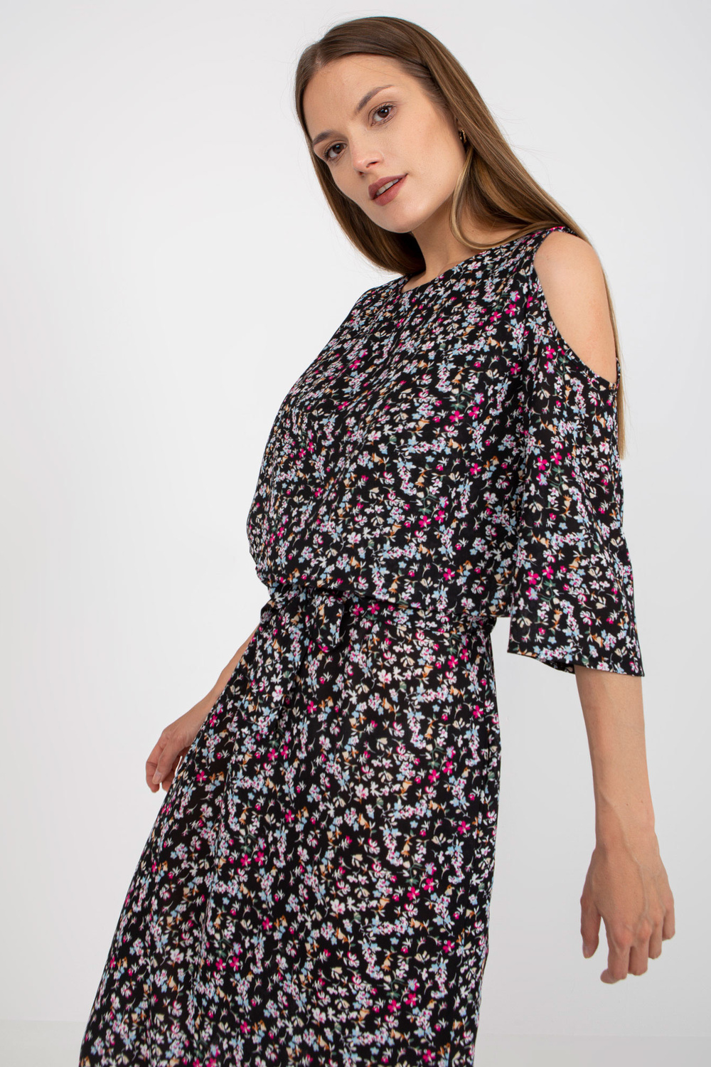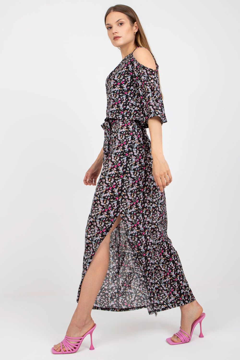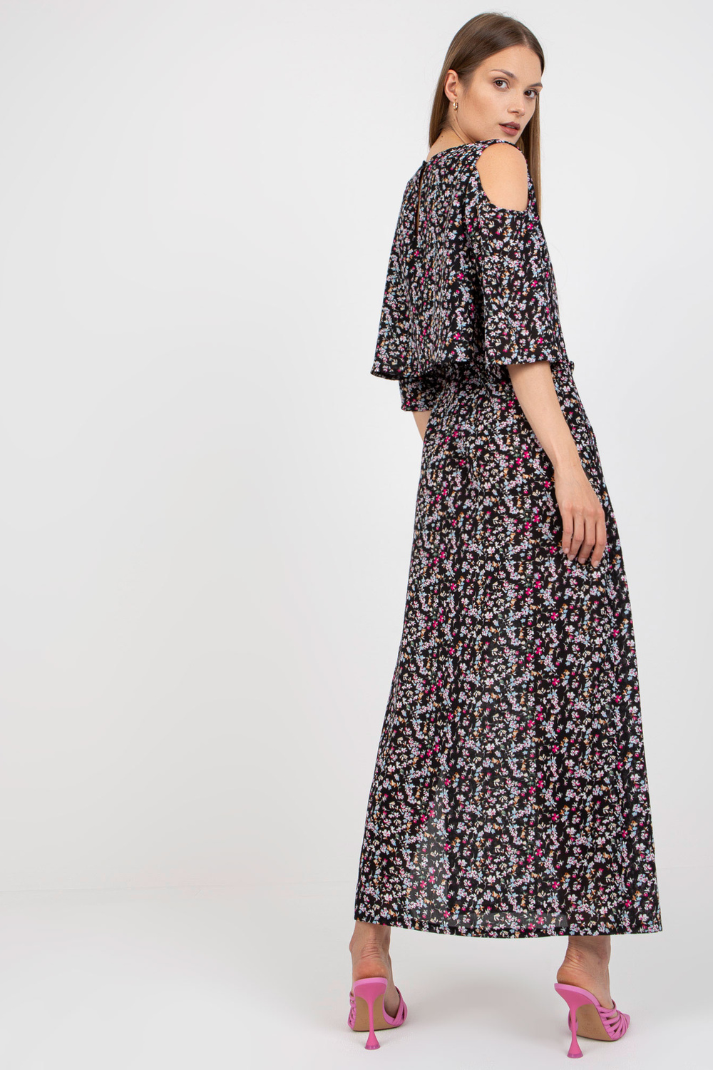 Melna puķaina maksi kleita ar kabatām ZULUNA .