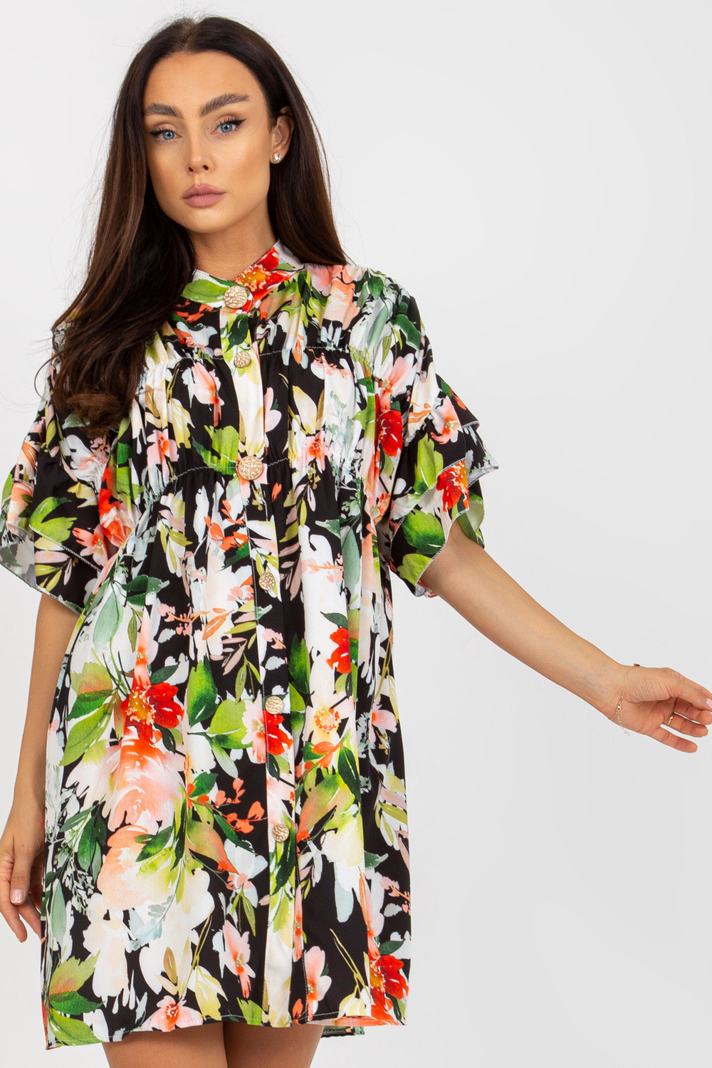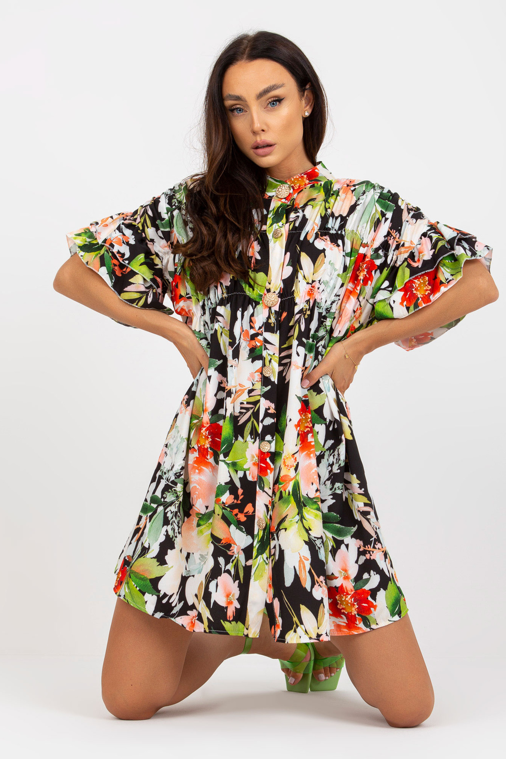 Melna ziedu kleita ar volāniem.