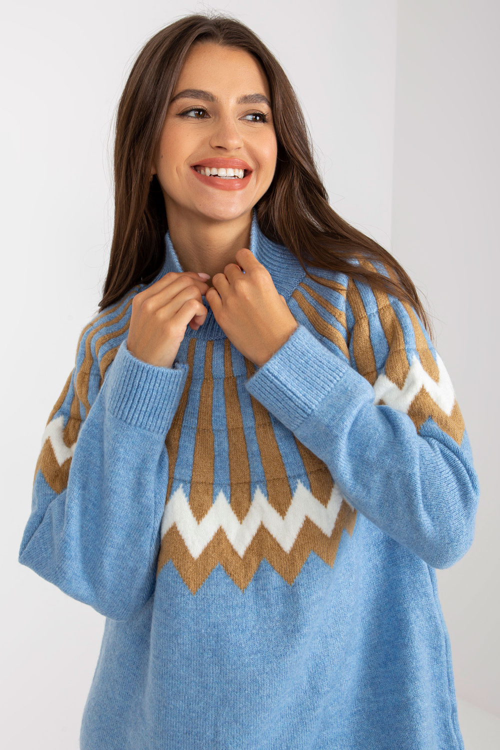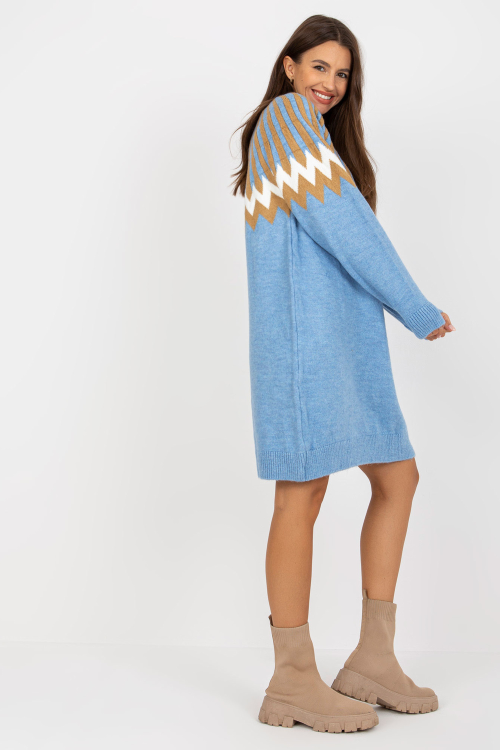Zilā trikotāžas kleita ar ģeometrisku rakstu RUE PARIS.