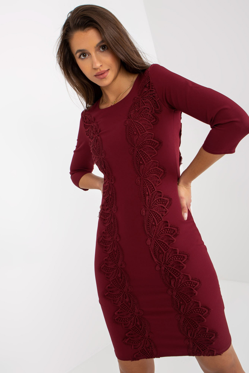 Bordo zīmuļu kokteiļkleita ar 3/4 piedurknēm.