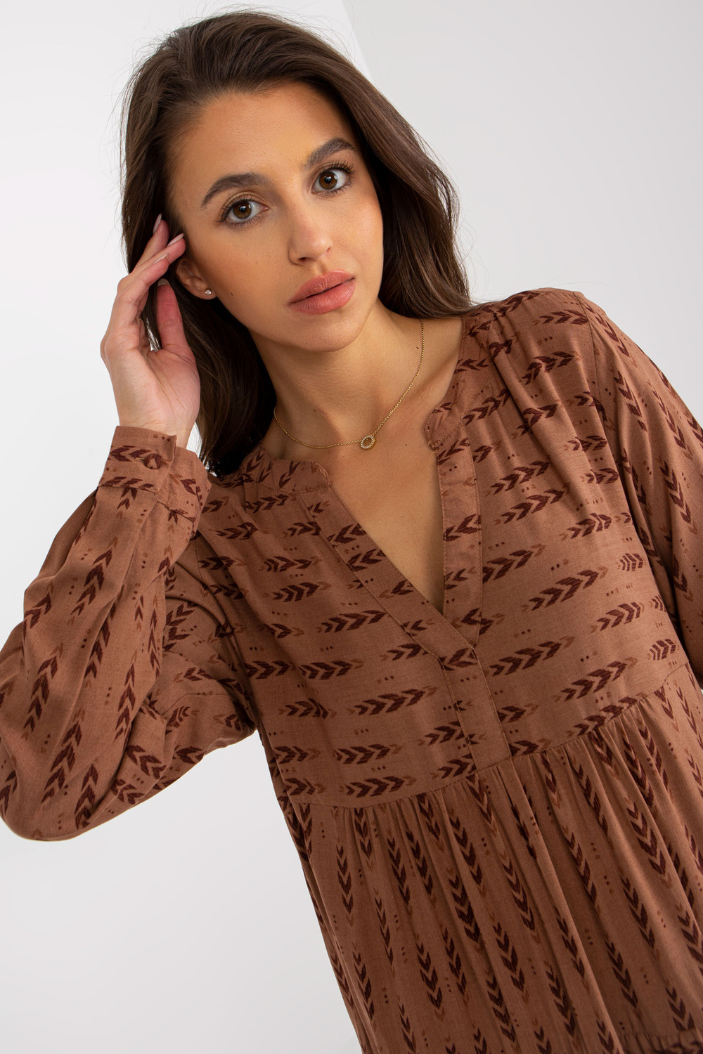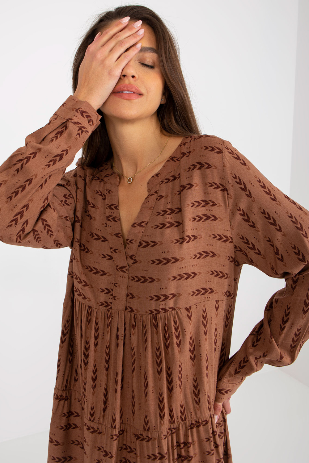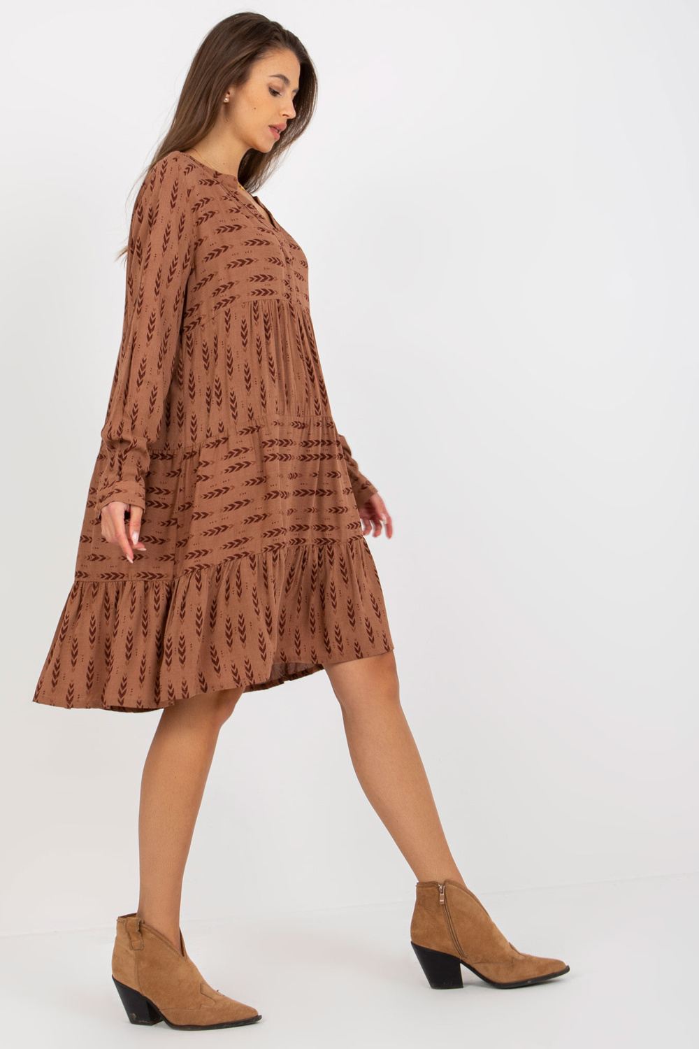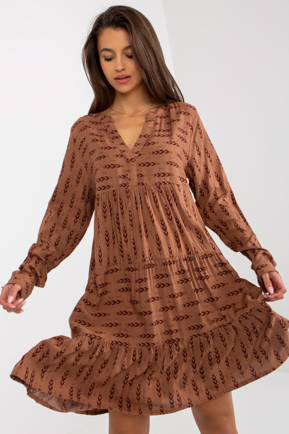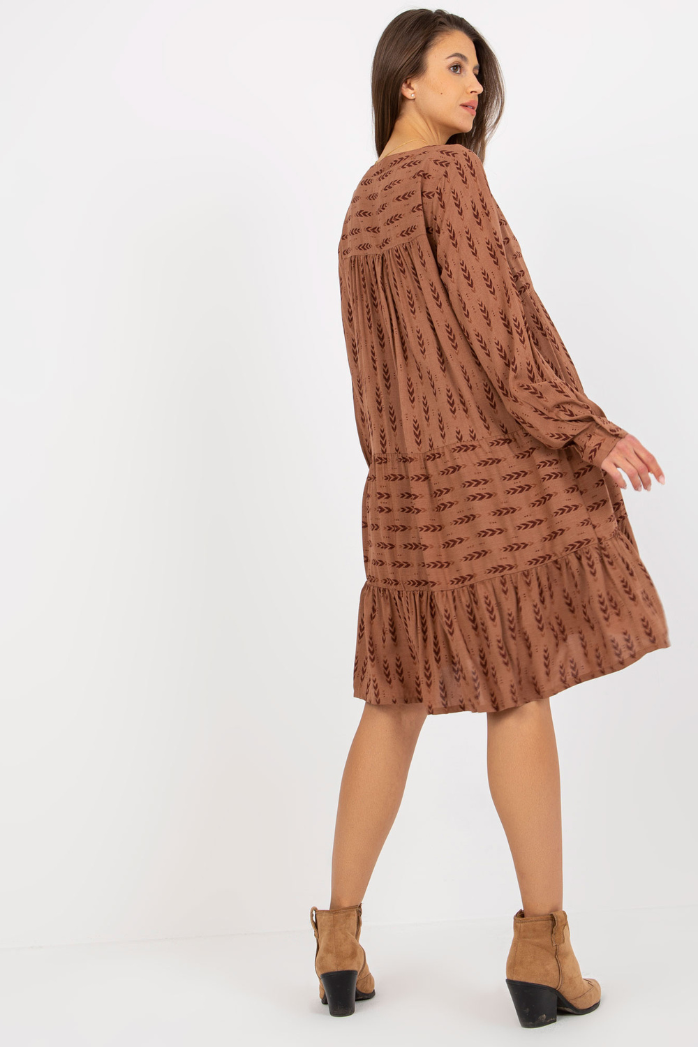 Brūna brīva kleita ar apdrukām un volāniem SUBLEVEL strong> .