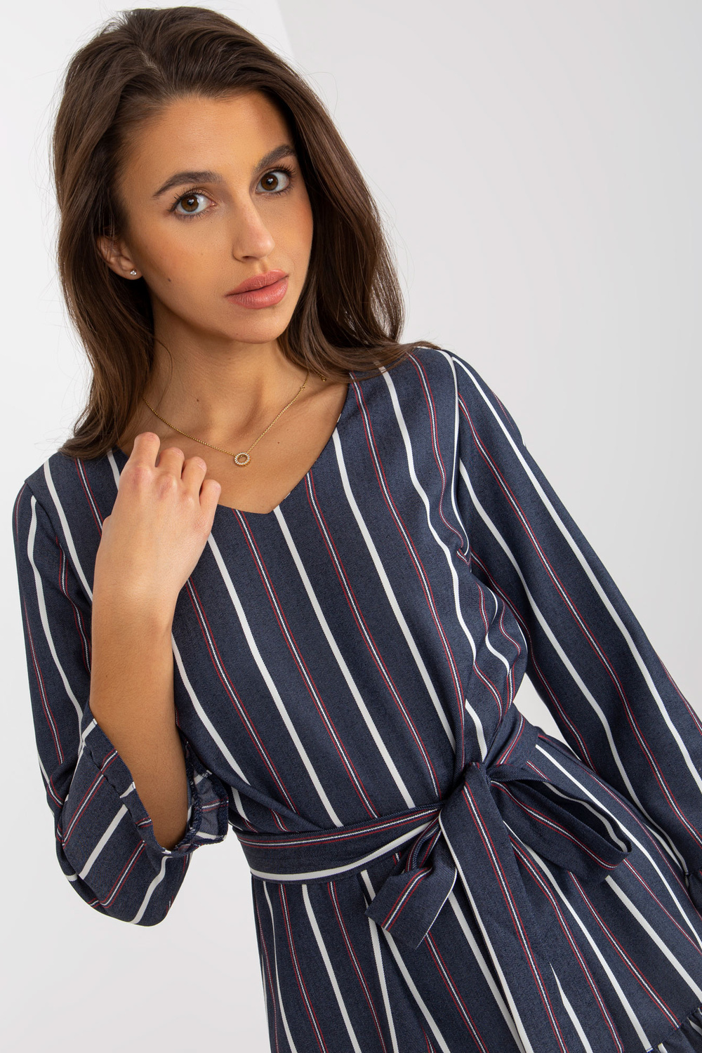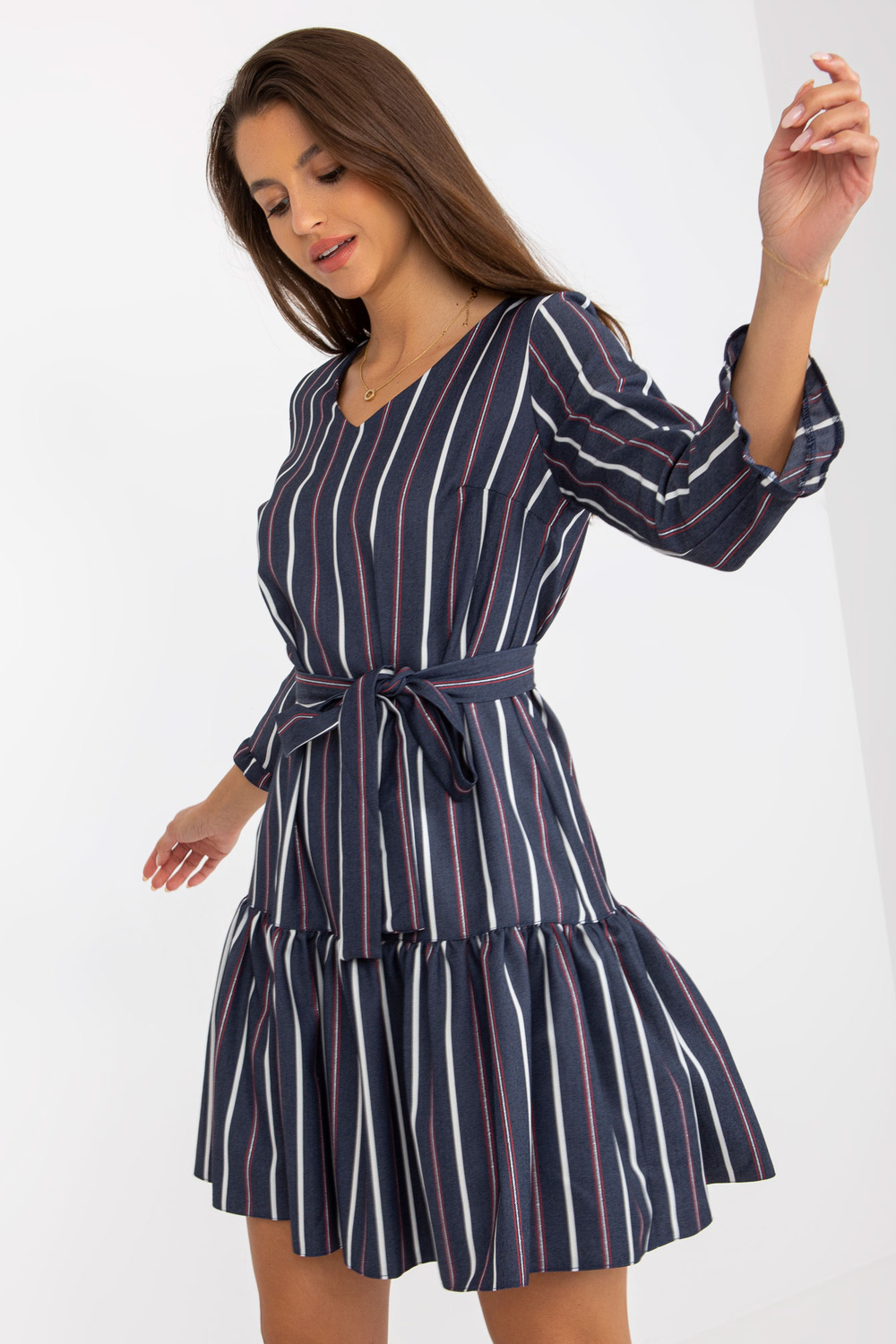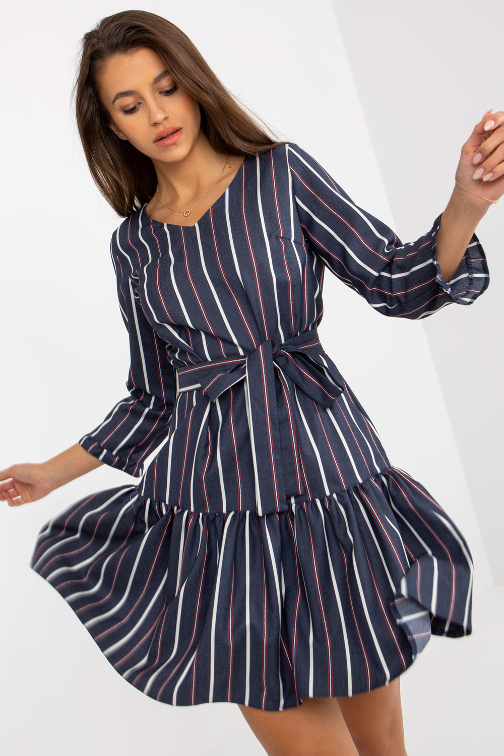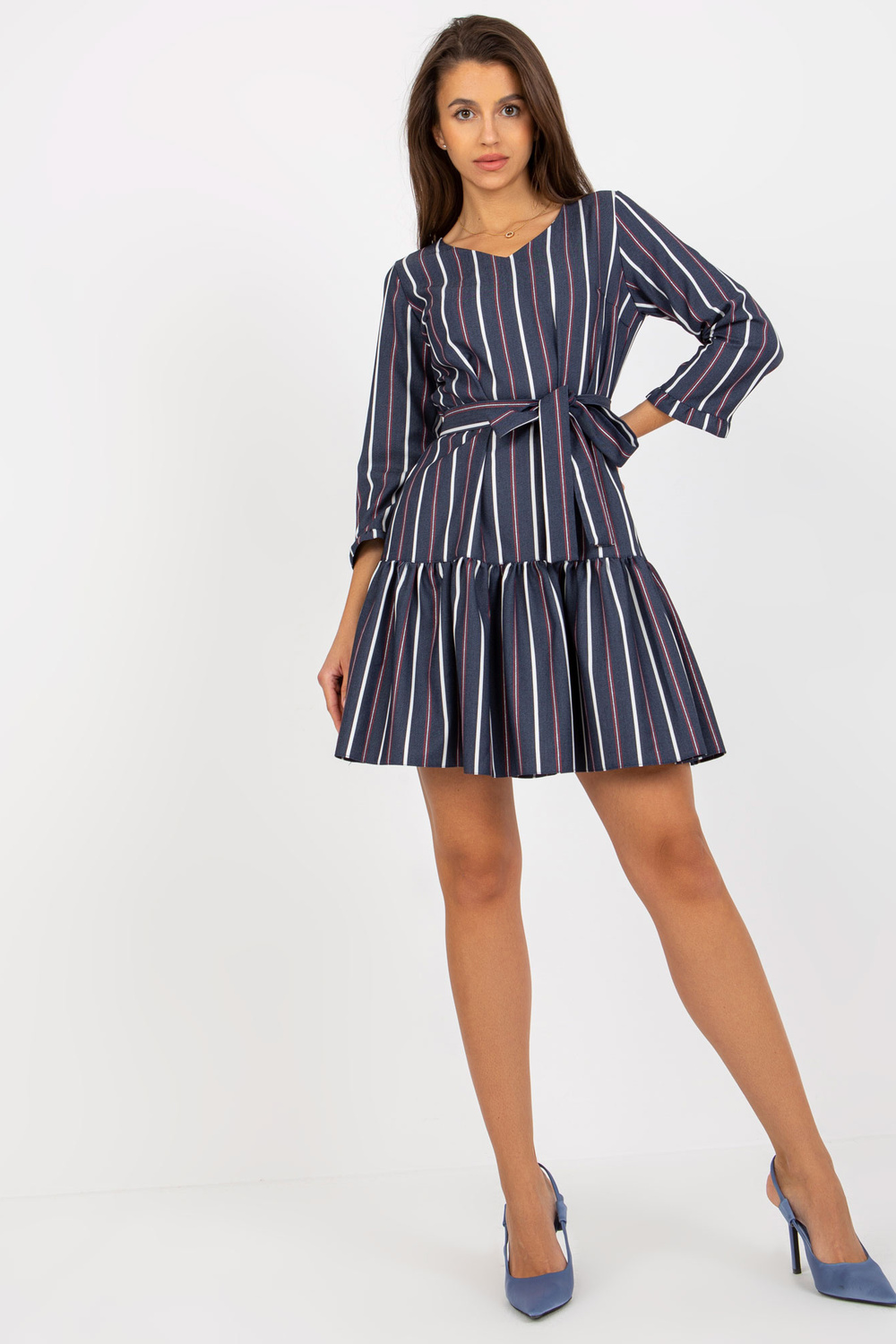 Marineblau gestreiftes Cocktail-Minikleid mit Volant.