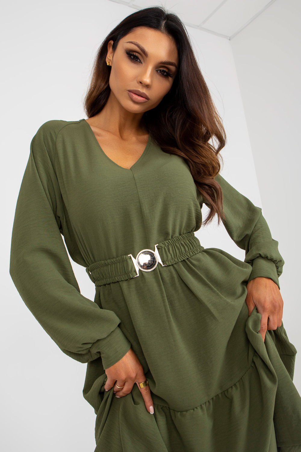 Khaki krāsas midi patīkama volānu kleita OCH BELLA.