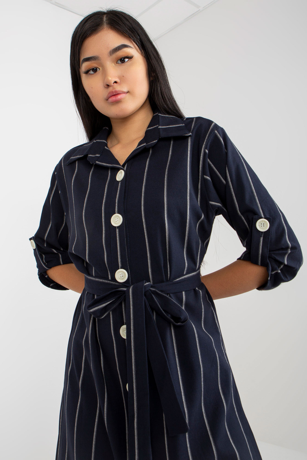 Jūrzila svītraina kreklkleita ar sasienamu jostu.