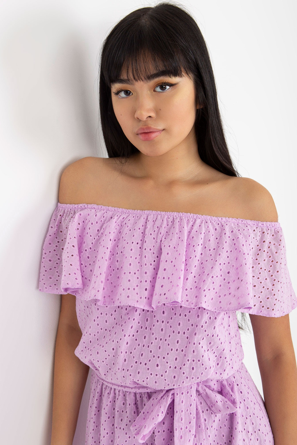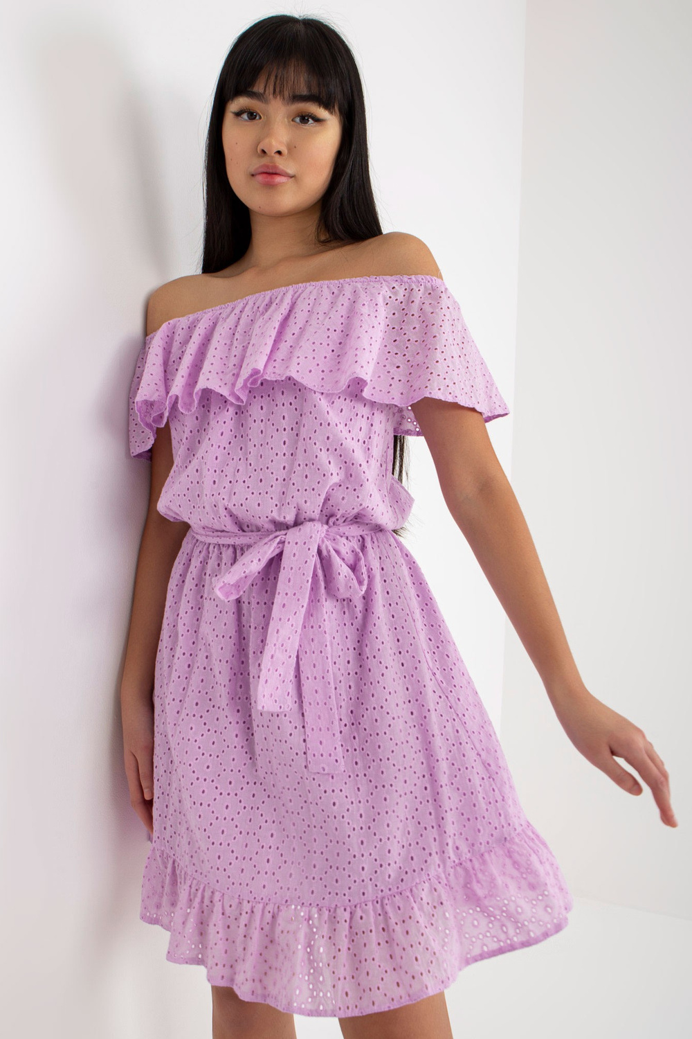 Gaiši violeta ažūra spāņu kleita ar iesējumu.