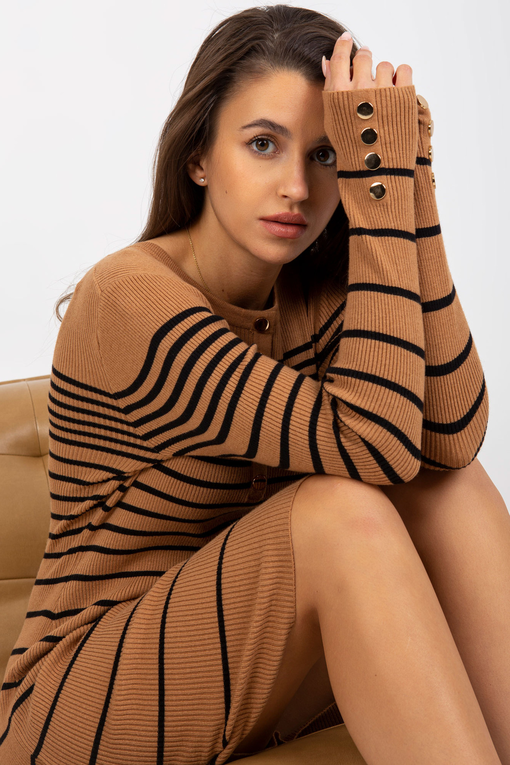 Geripptes Kamelkleid mit Knöpfen