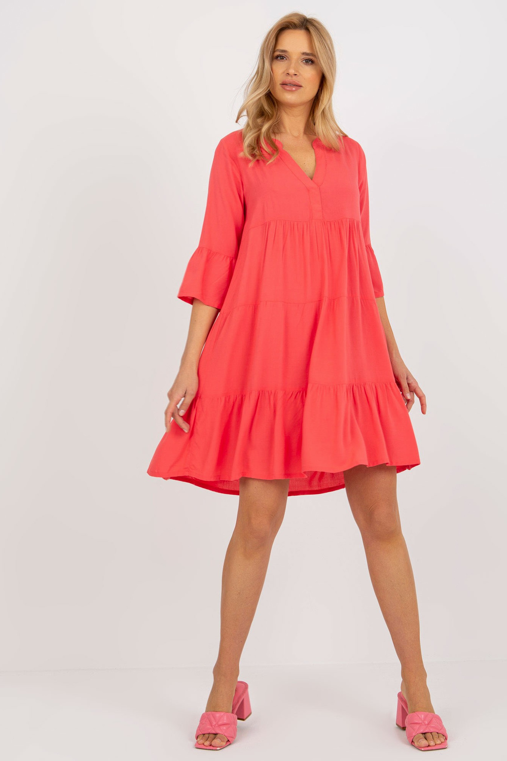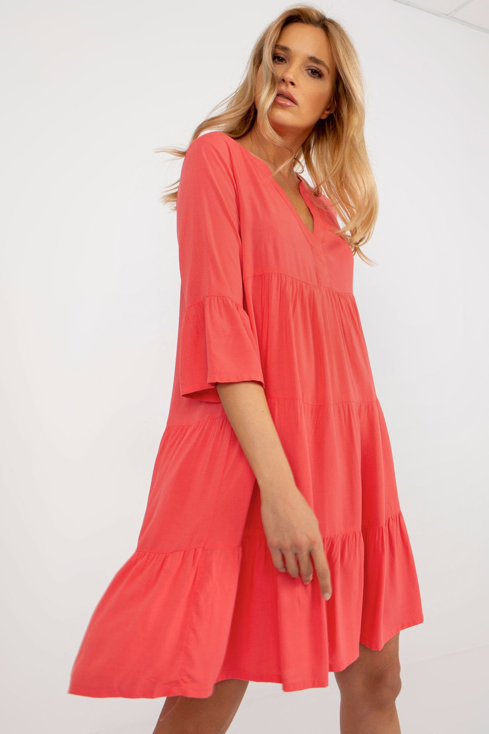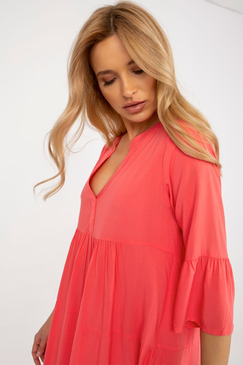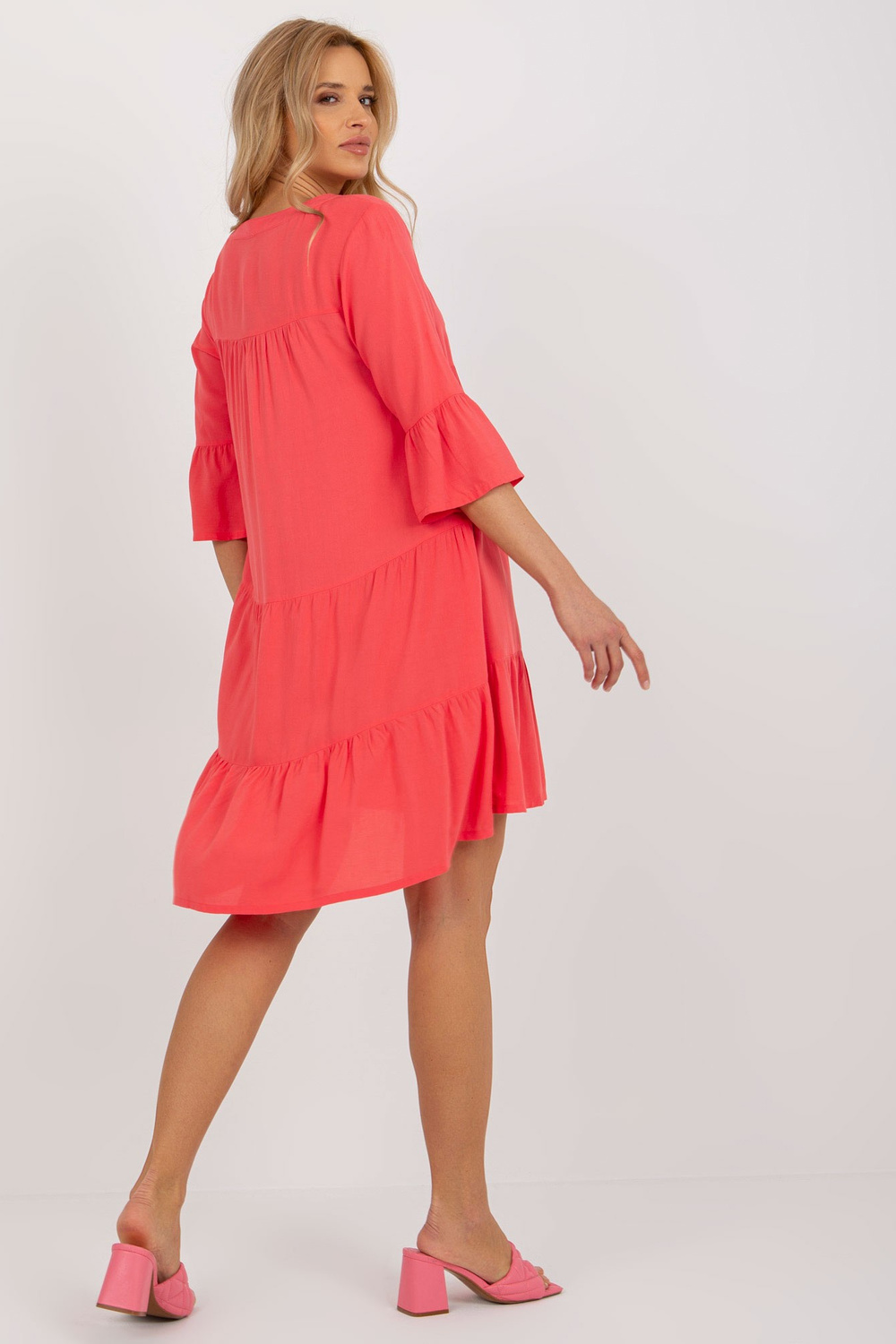 Koraļļu brīva volānu kleita ar 3/4 piedurknēm SUBLEVEL