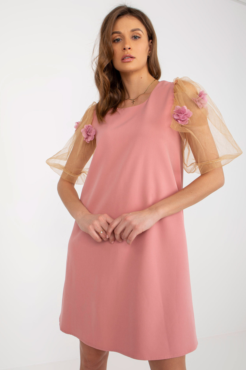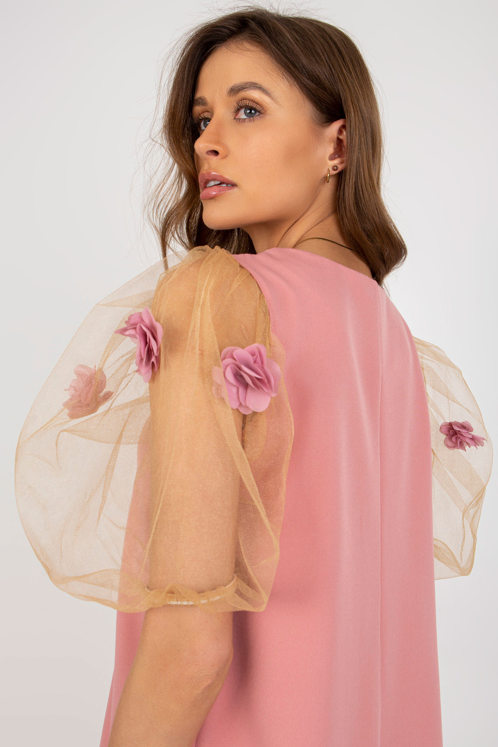 Netīri rozā kamieļu kokteiļkleita ar 3D ziediem.