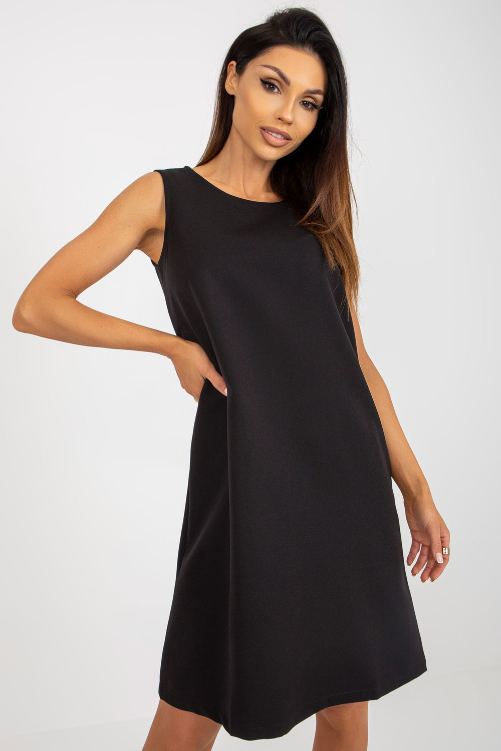 Melna kokteiļkleita ar apaļu kakla izgriezumu OCH BELLA.