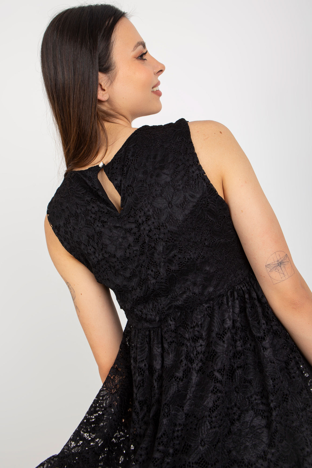 Modele valkā S izmēru. Modeļa izmēri: augums 175 cm, krūtis 84 cm, viduklis 61 cm, gurni 91 cm.