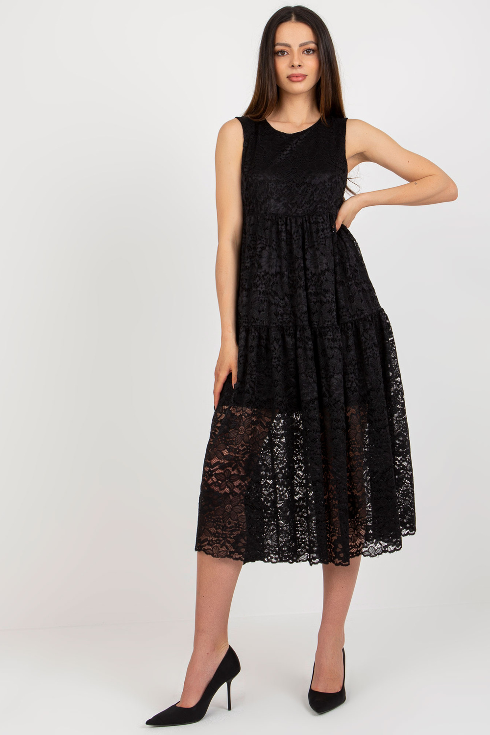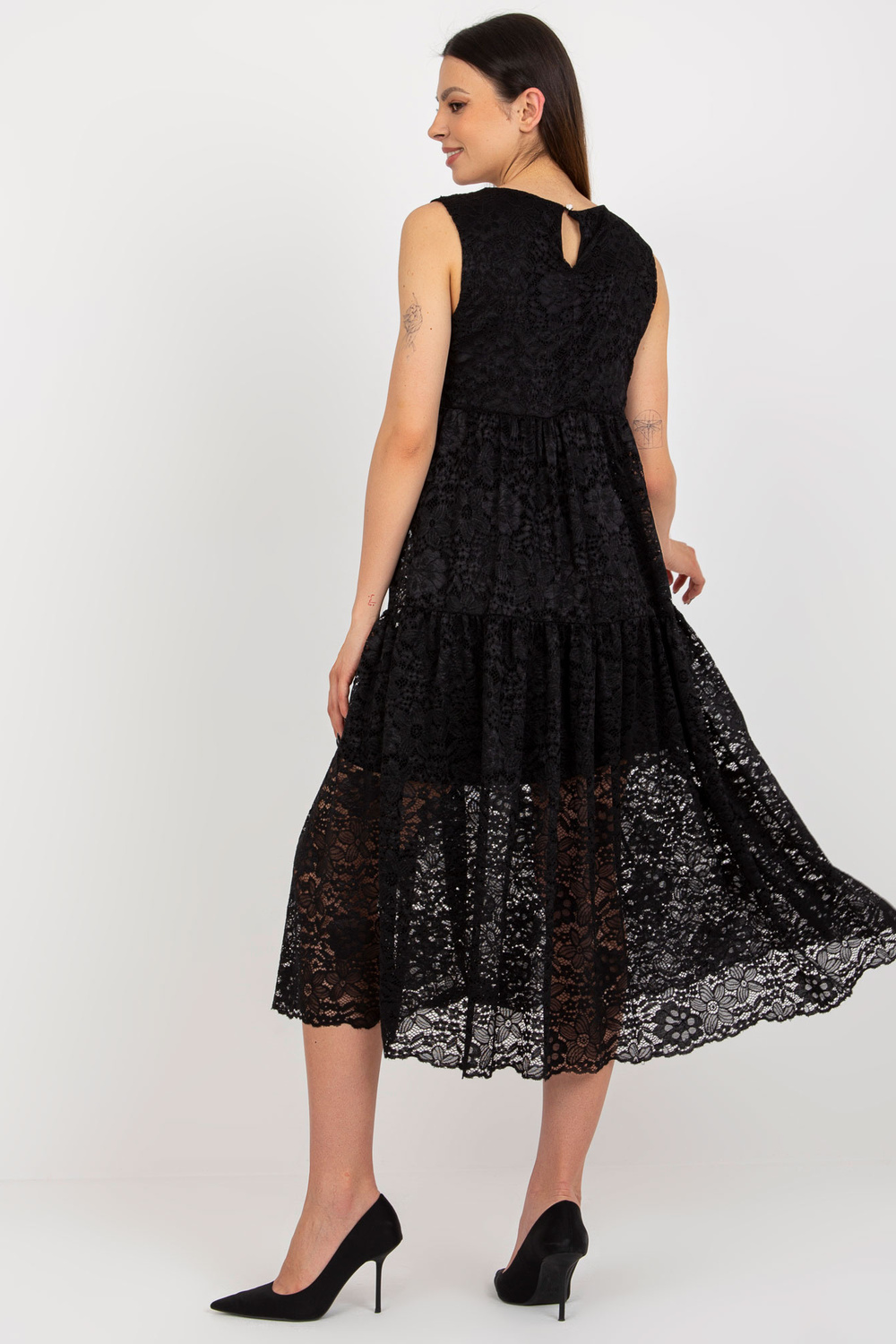 Kleitas izmēri S izmēram mērot uz plakanas: platums zem rokām - 49 cm, kopējais garums - 122 cm.