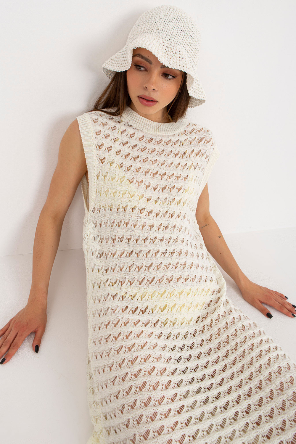 Modele valkā vienu izmēru. Modeļa izmēri: augums 175 cm, krūtis 84 cm, viduklis 61 cm, gurni 91 cm.