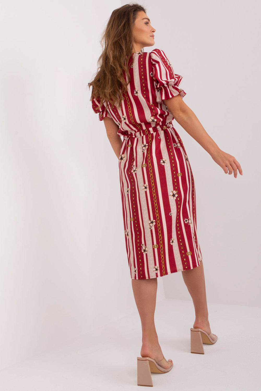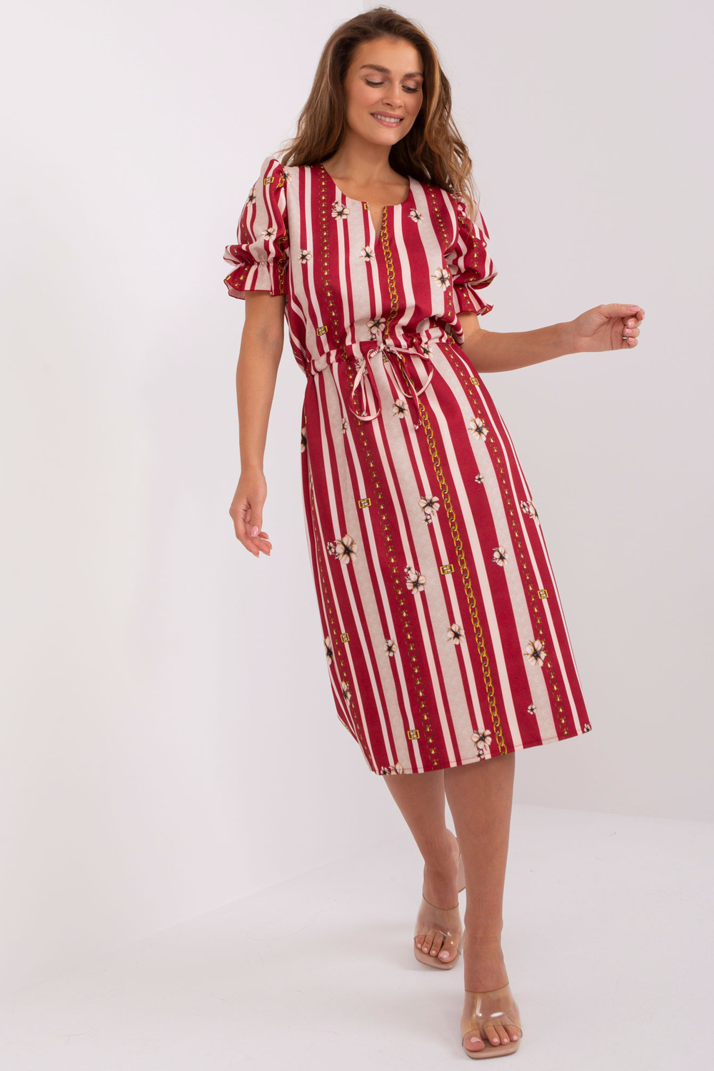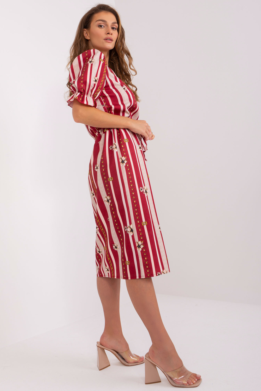 Modele valkā 36. izmēru. Modeles izmēri: augums 170 cm, krūtis 93 cm, viduklis 66 cm, gurni 93 cm.