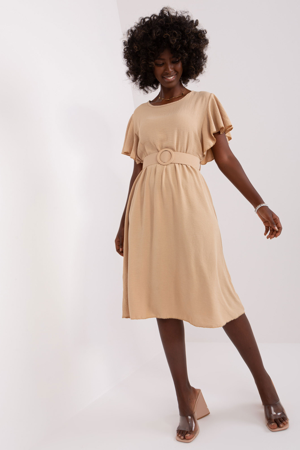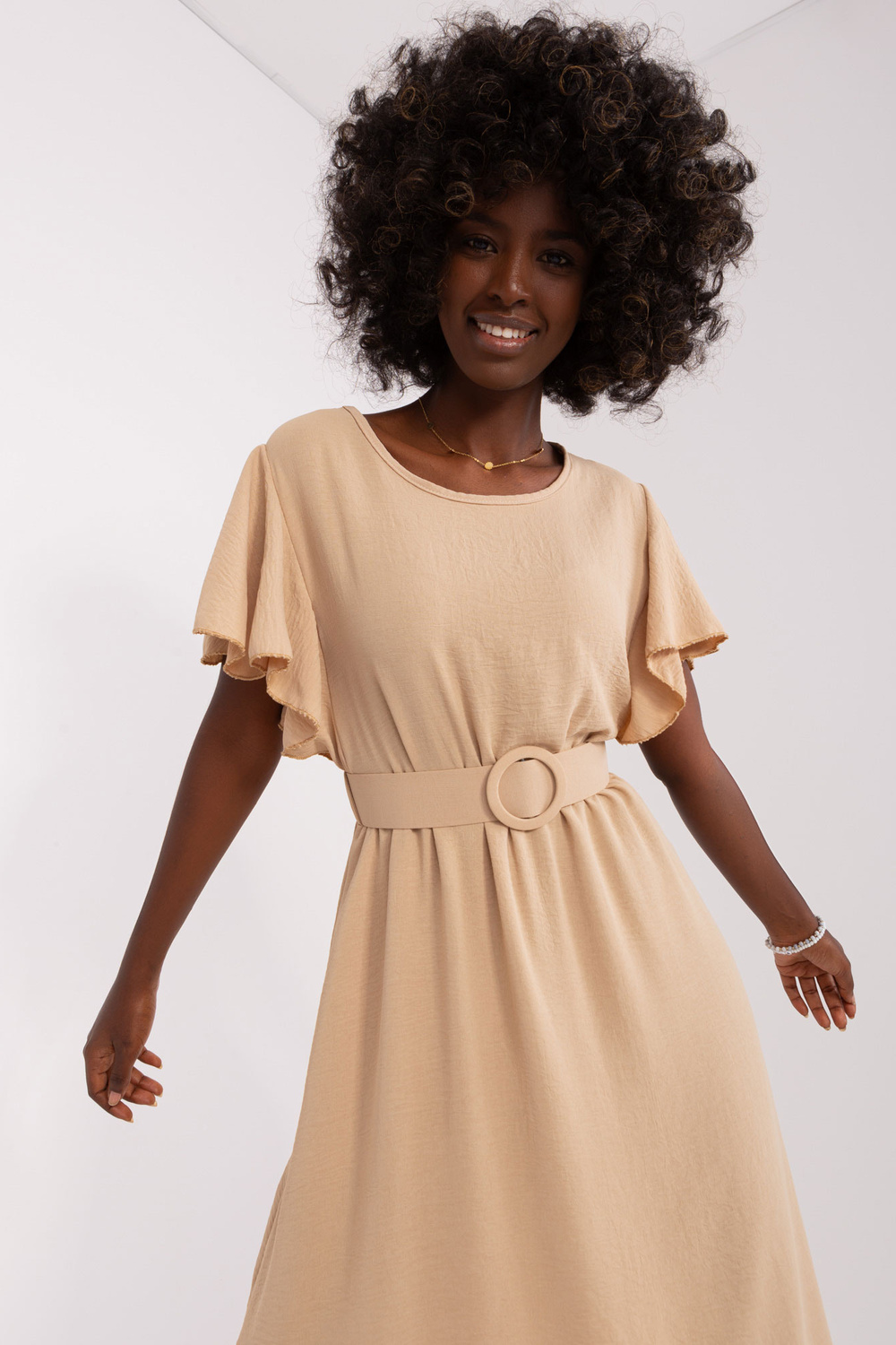 Modele valkā vienu izmēru. Modeļa izmēri: augums 168 cm, krūtis 82 cm, viduklis 62 cm, gurni 93 cm.