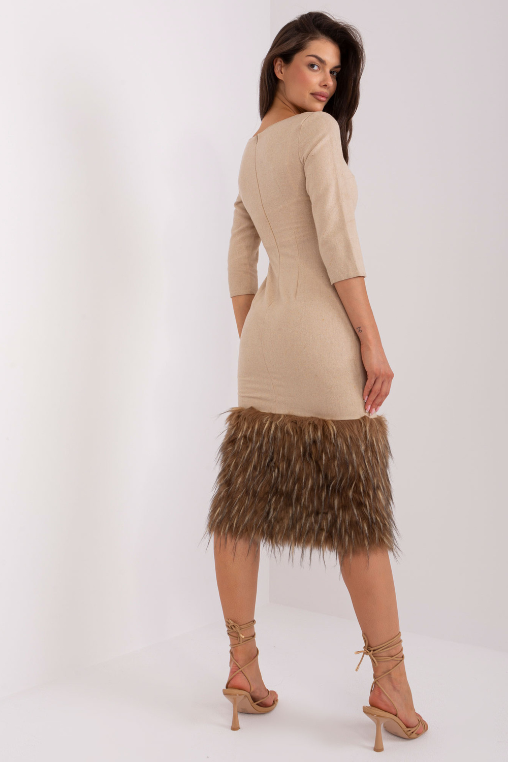 Modele valkā 36. izmēru. Modeles izmēri: augums 173 cm, krūtis 85 cm, viduklis 62 cm, gurni 95 cm.