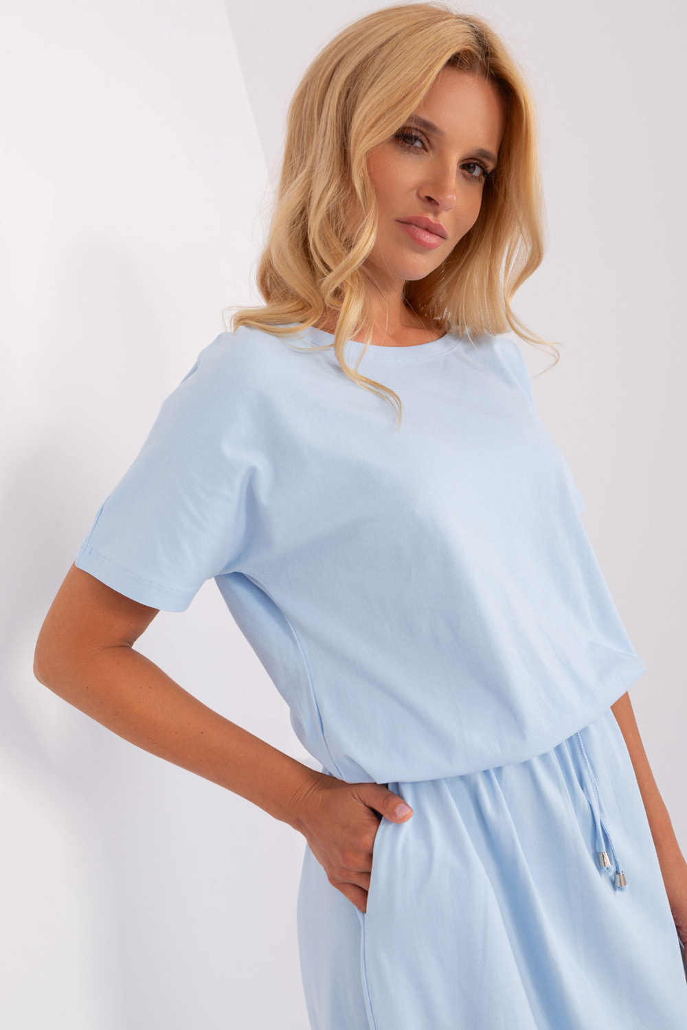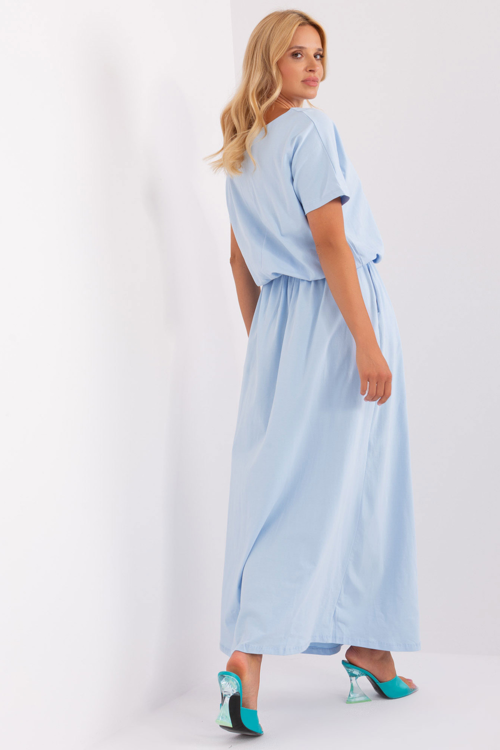 Modele valkā vienu izmēru. Modeļa izmēri: augums 175 cm, krūtis 90 cm, viduklis 66 cm, gurni 94 cm.