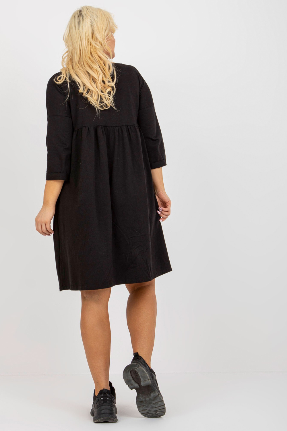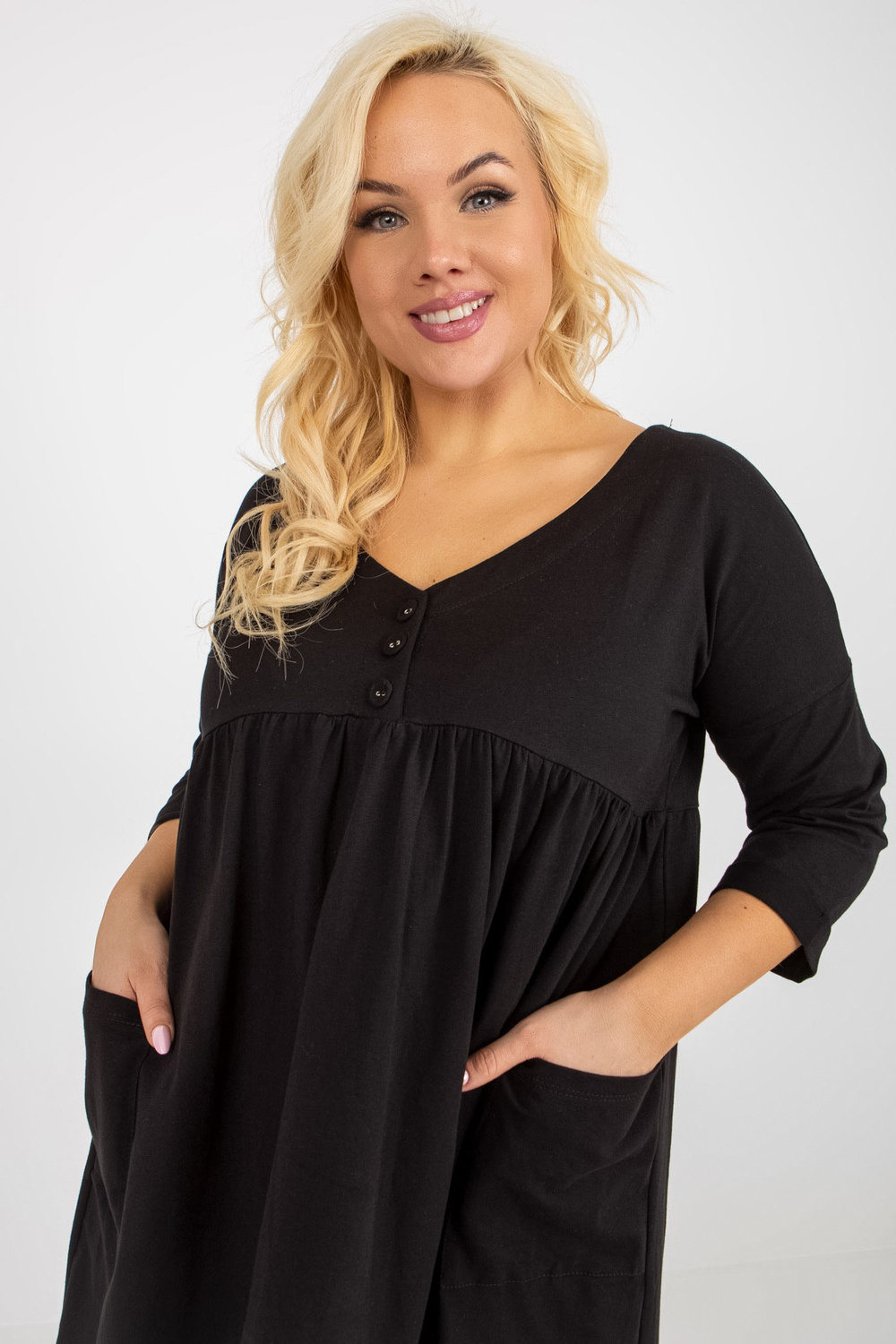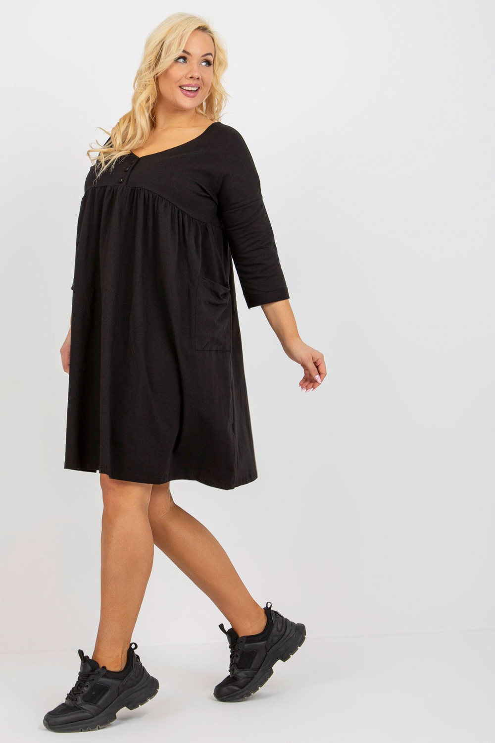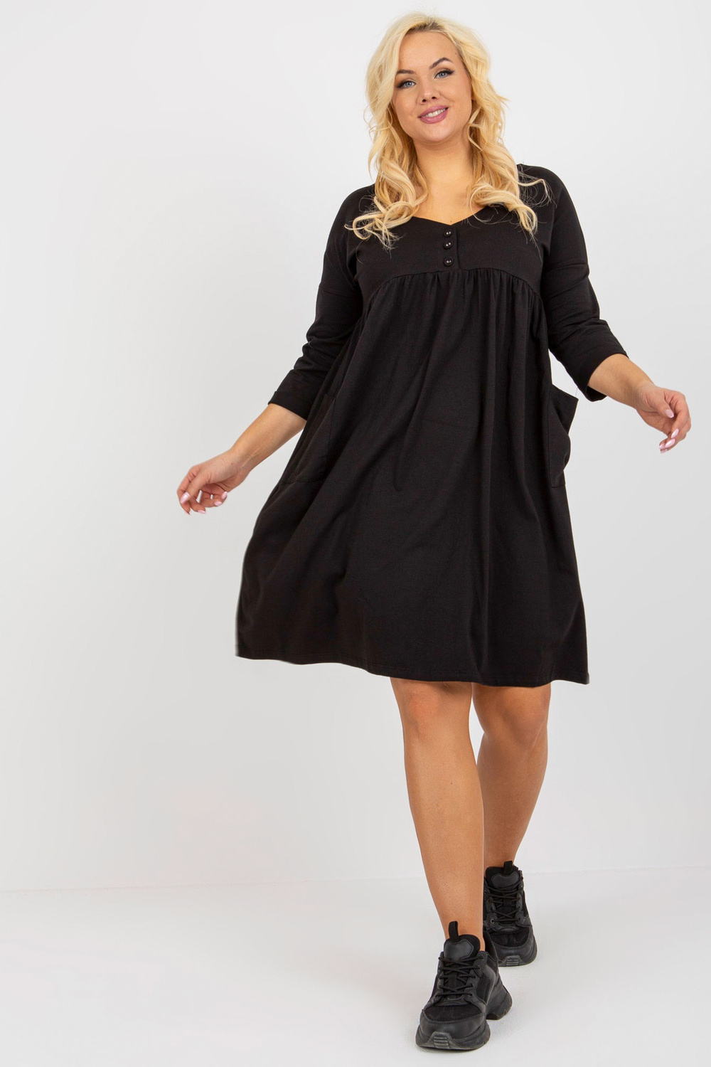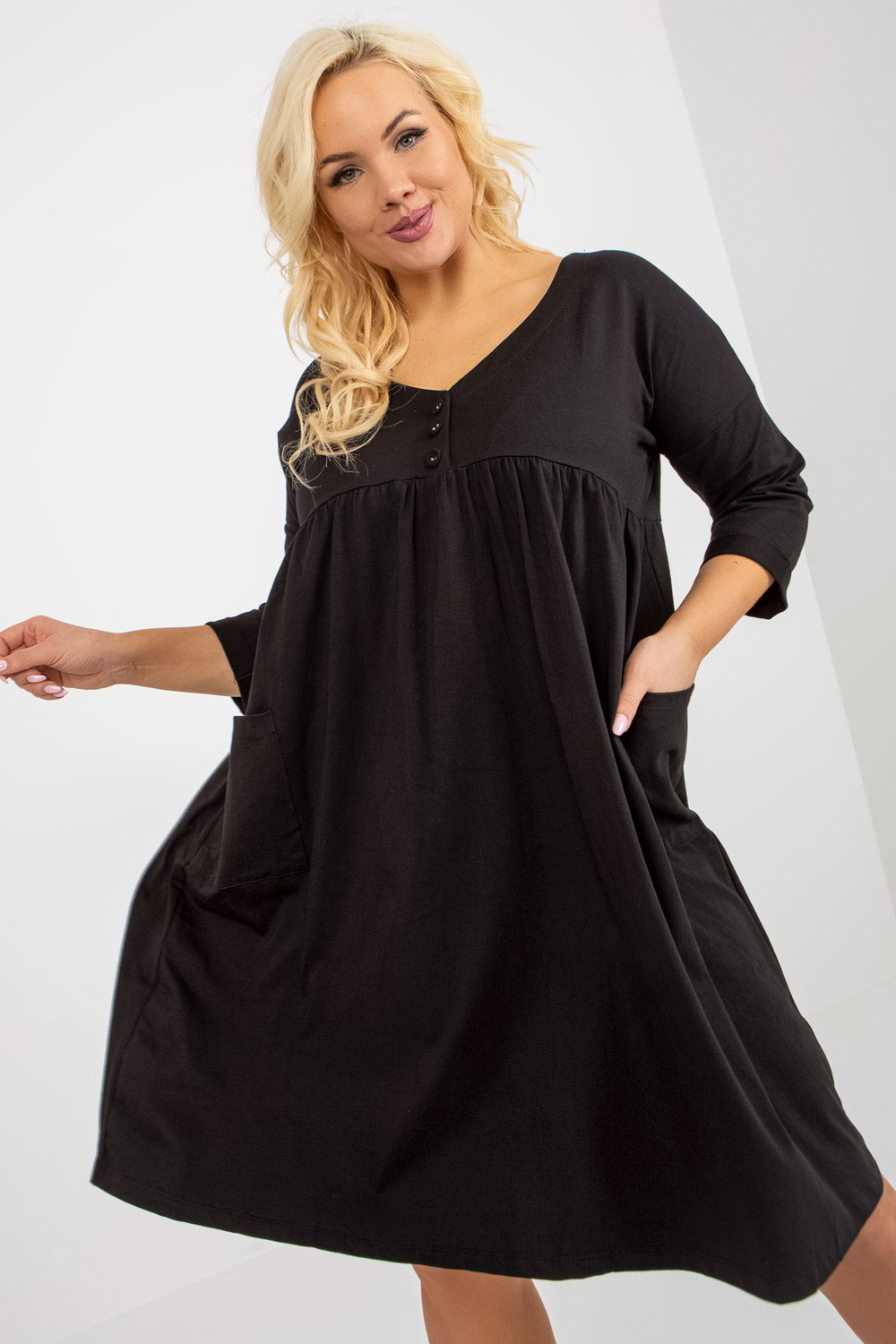 Melna liela izmēra liela izmēra kleita ar kabatām.