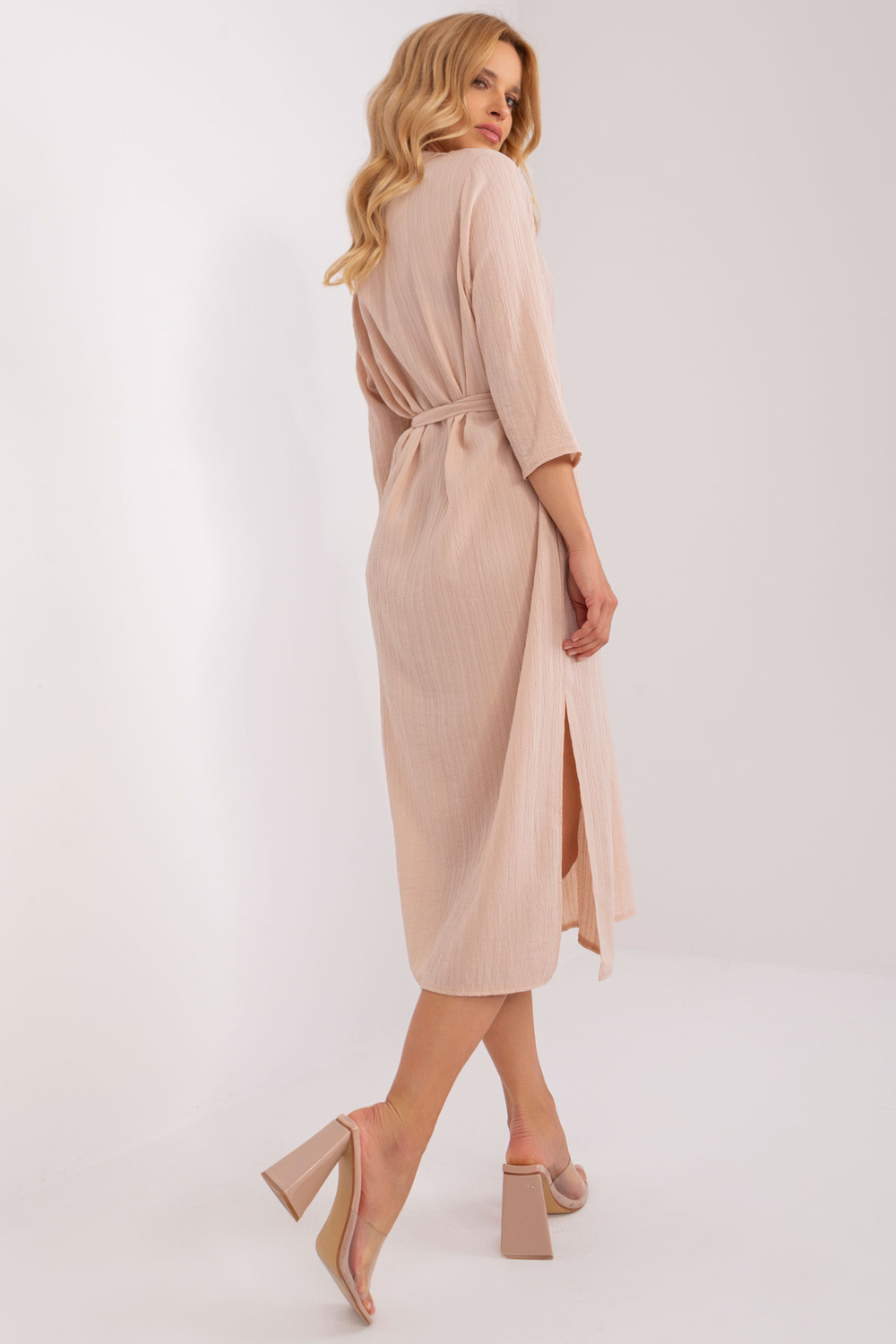Kleitas izmēri M izmēram mērot uz plakanas: paduses platums - 55 cm, piedurknes garums - 41 cm, kopējais garums - 123 cm.