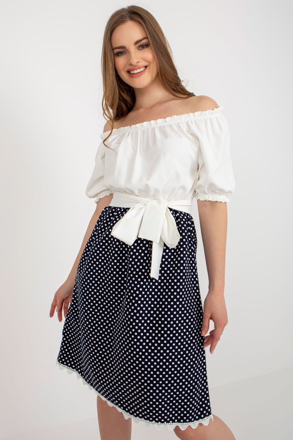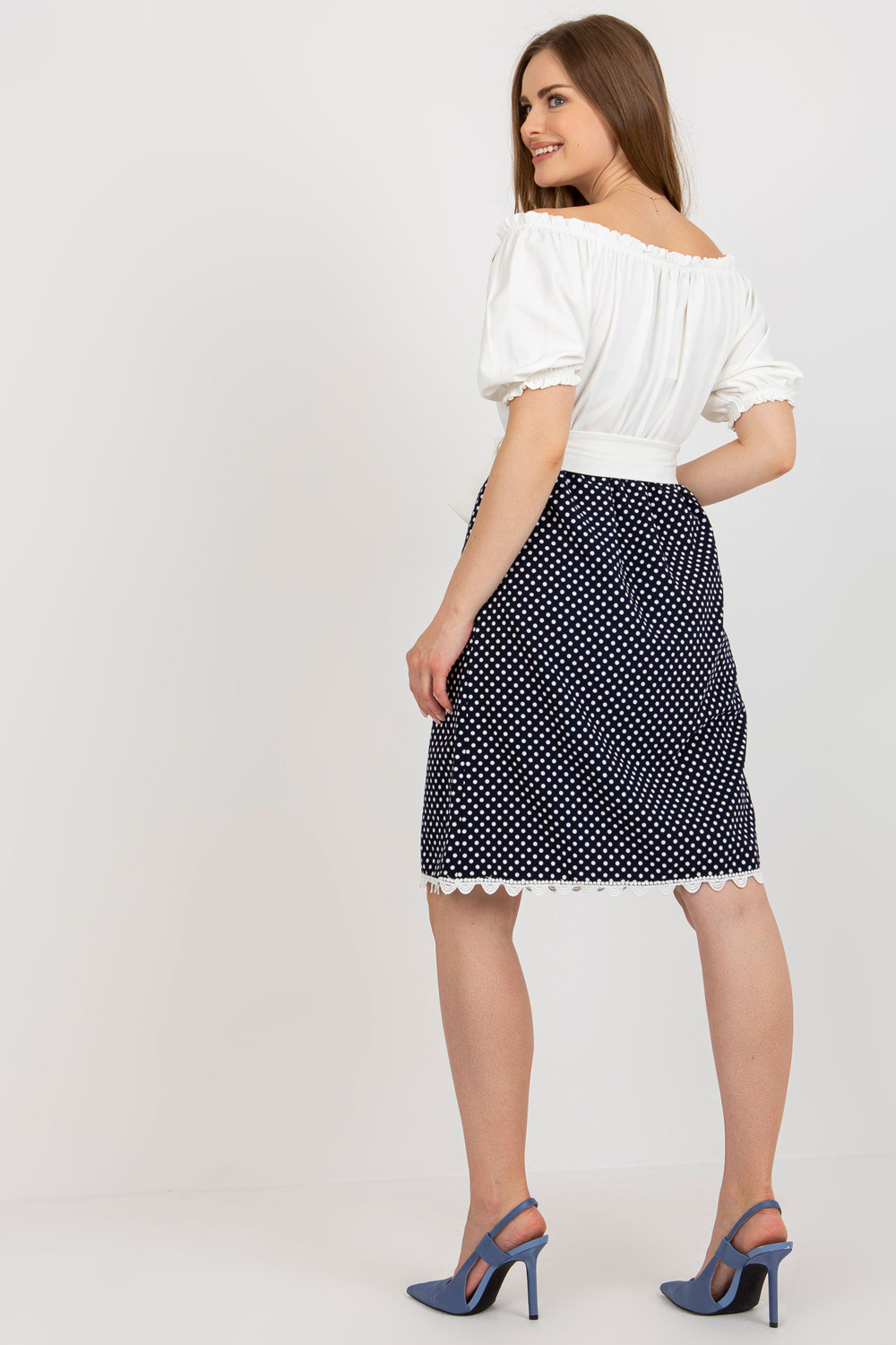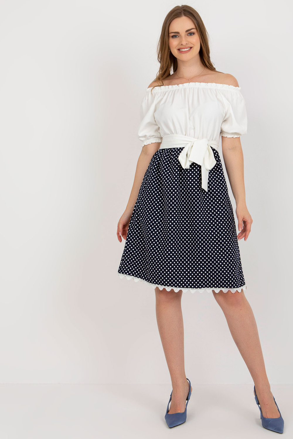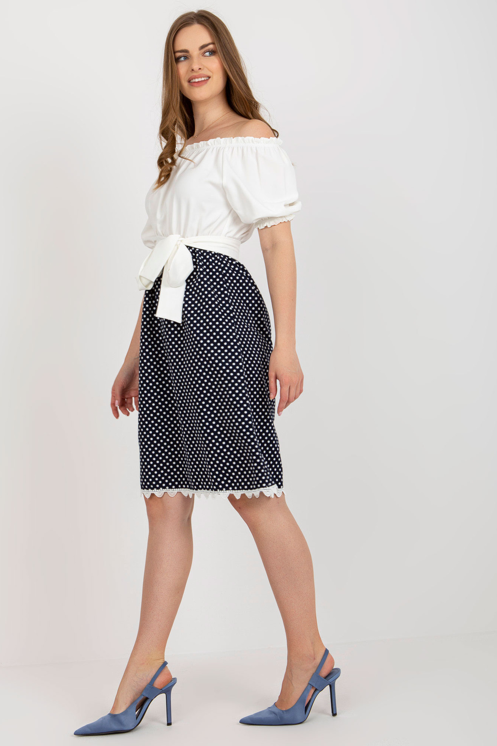 Modele valkā 36. izmēru. Modeles izmēri: augums 170 cm, krūtis 84 cm, viduklis 64 cm, gurni 93 cm.