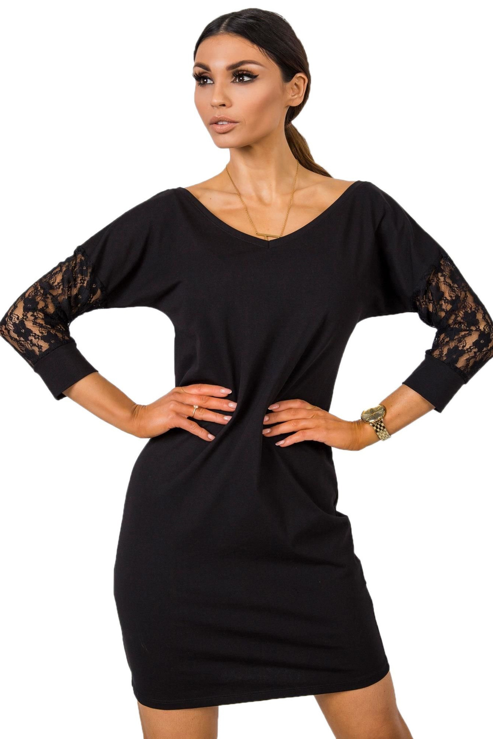 Beatrises RUE PARIS melnā kleita. materiālssastāvs: 90% kokvilna, 10% elastāns mazgāšanas metode: mazgāšana veļasmašīnā 30°C Modelis valkā S izmēru. Modeļa izmēri: augums 168 cm, krūtis 89 cm, viduklis 60 cm, gurni 91 cm.
