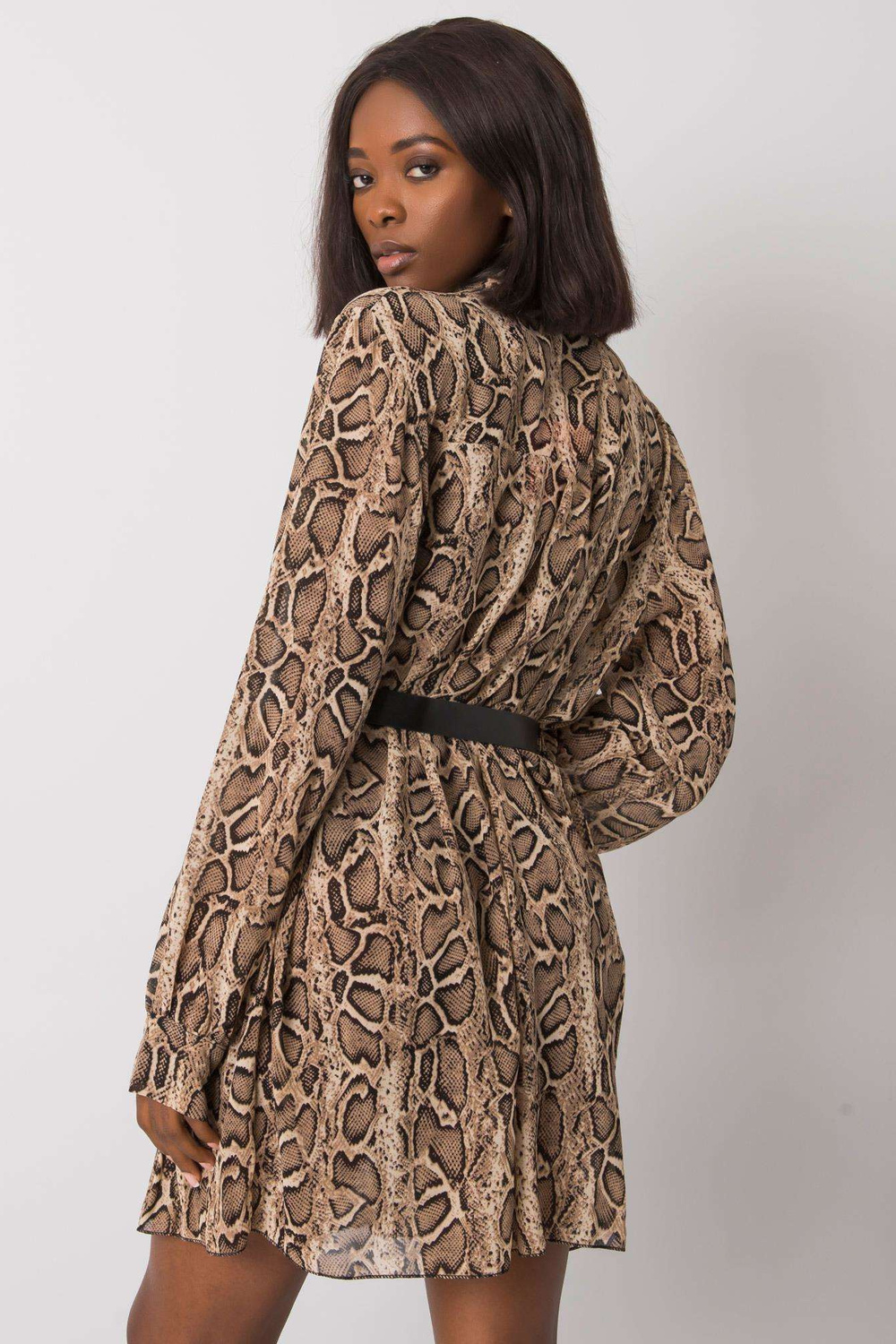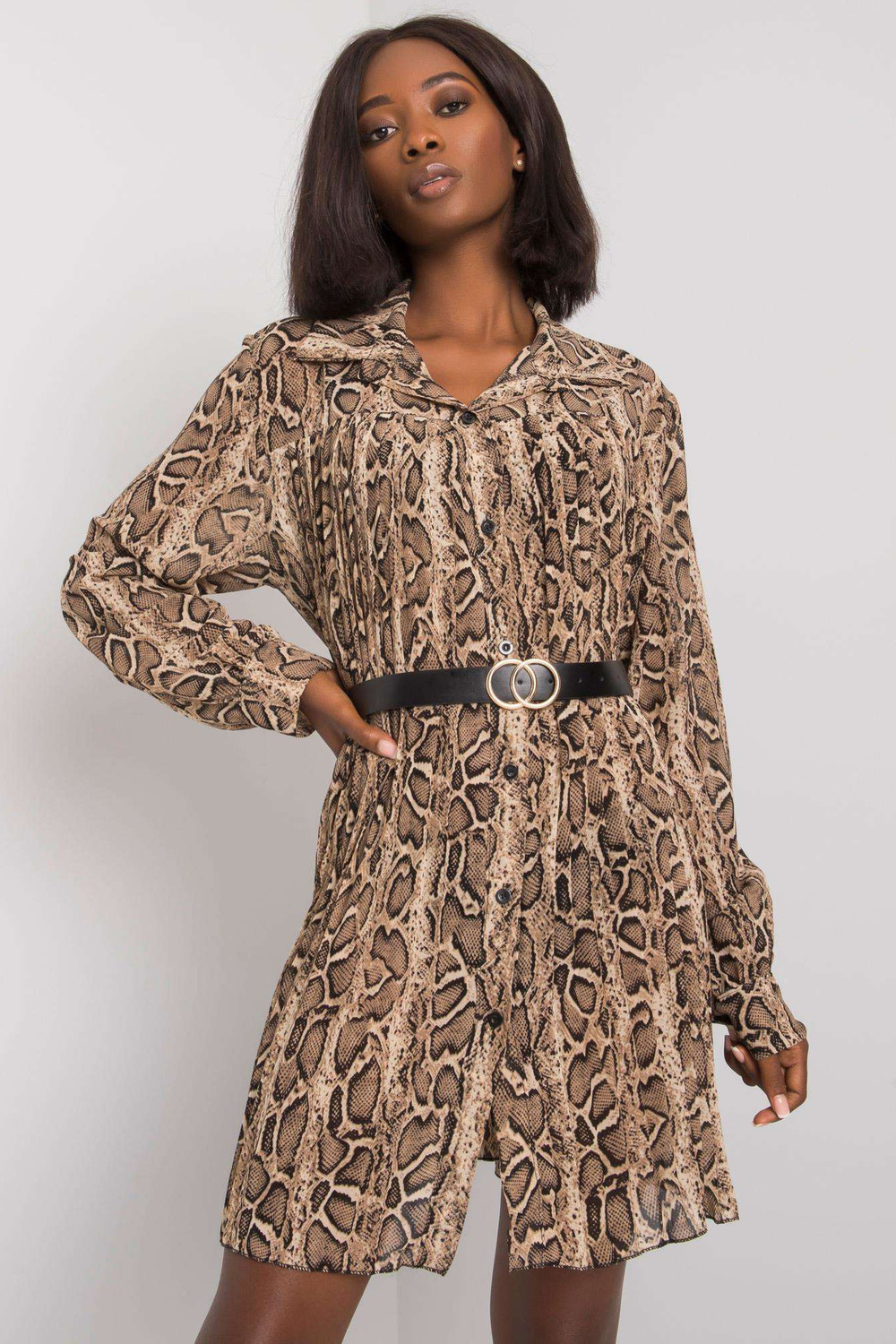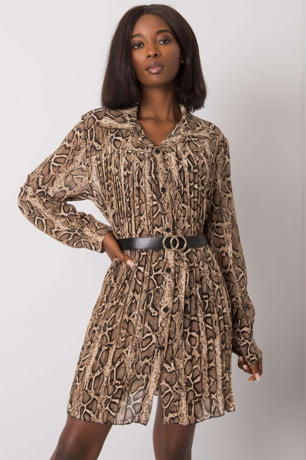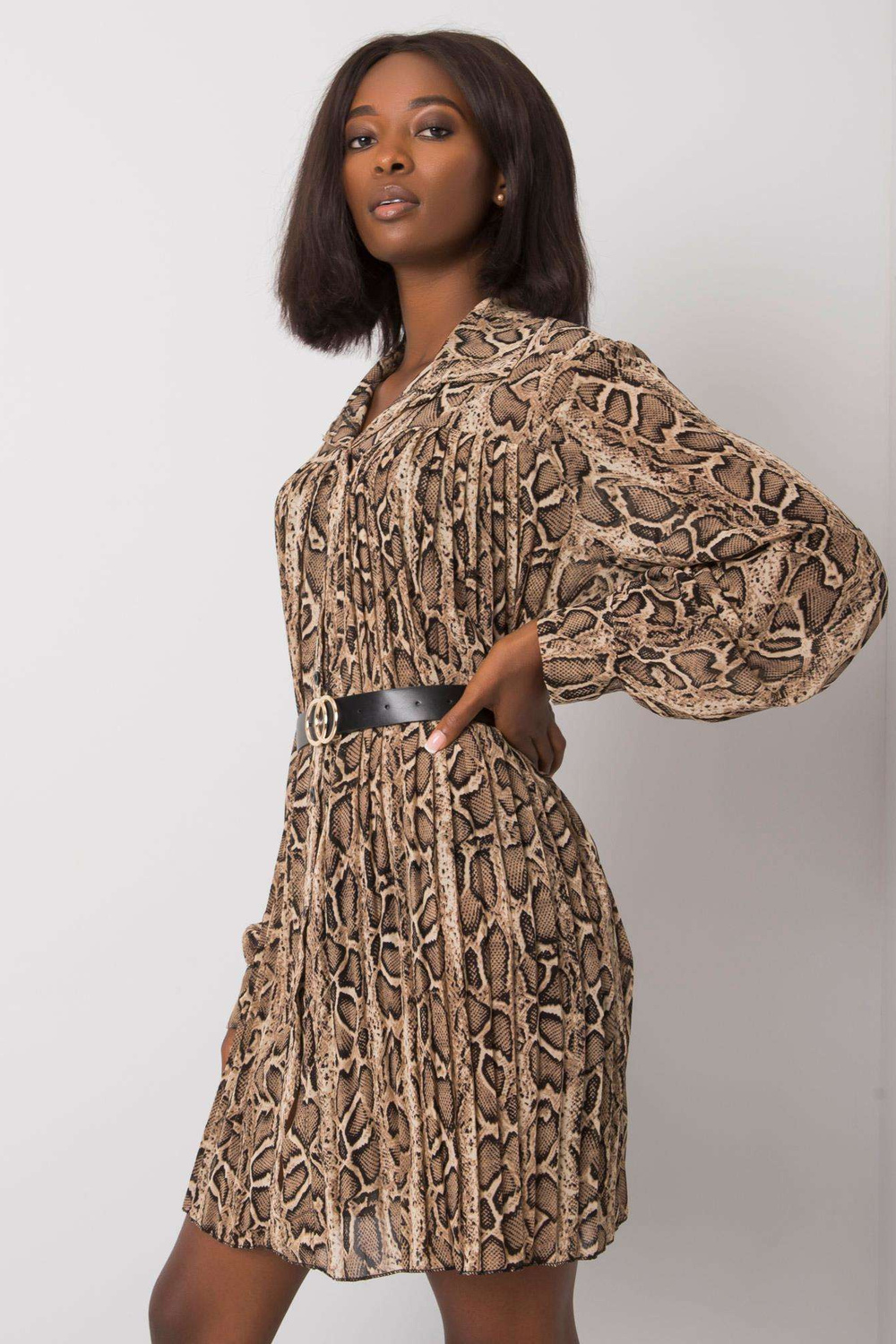 Bēša un melna Aishan kroku kleita. ekstras: siksniņas materiālssastāvs: 95% poliesters, 5% elastāns mazgāšanas metode: veļas mašīna 30°C. Modelis valkā viena izmēra izmēru. Modeļa izmēri: augums 162 cm, krūtis 80 cm, viduklis 63 cm, gurni 80 cm. Izmēri