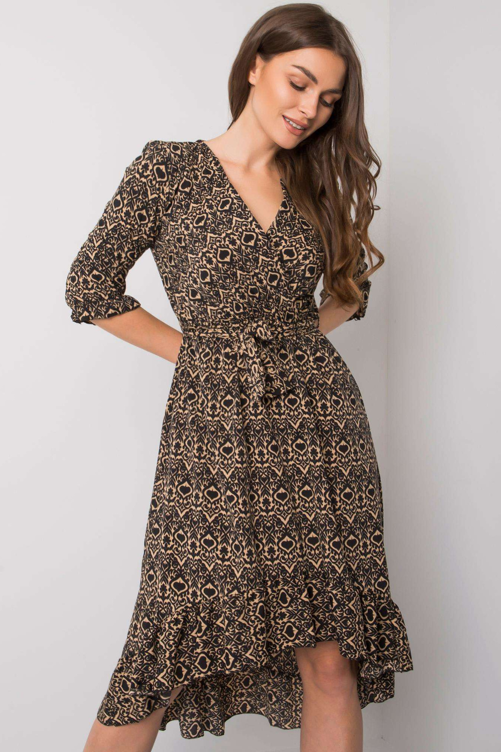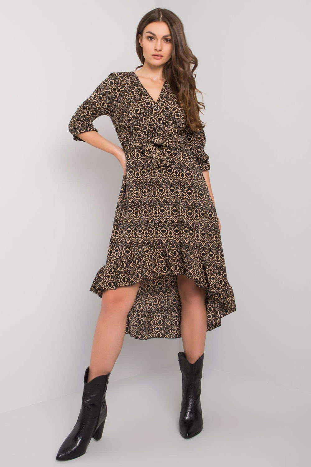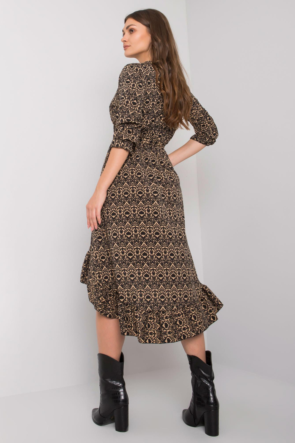 < p>Modele valkā viena izmēra izmēru. Modeļa izmēri: augums 170 cm, krūtis 93 cm, viduklis 66 cm, gurni 93 cm.Kleitas izmēri vienā izmērā, mērot plakani: platums zem padusēm - 46 cm, kopējais garums - 115 cm, piedurkņu garums - 40 cm