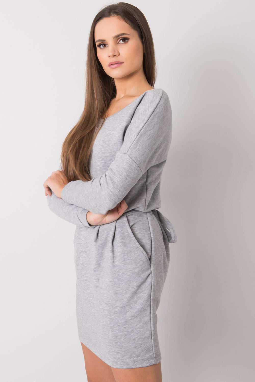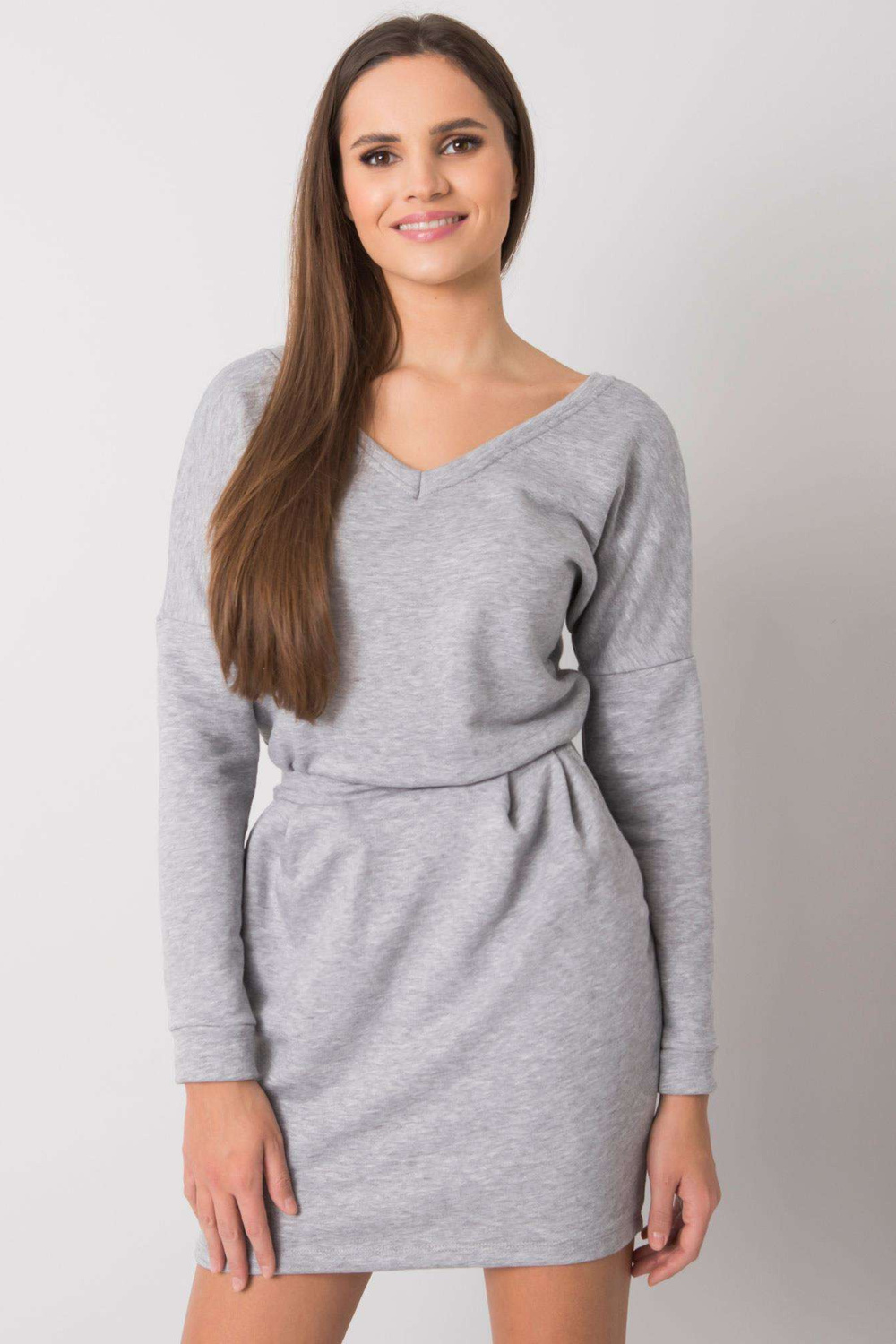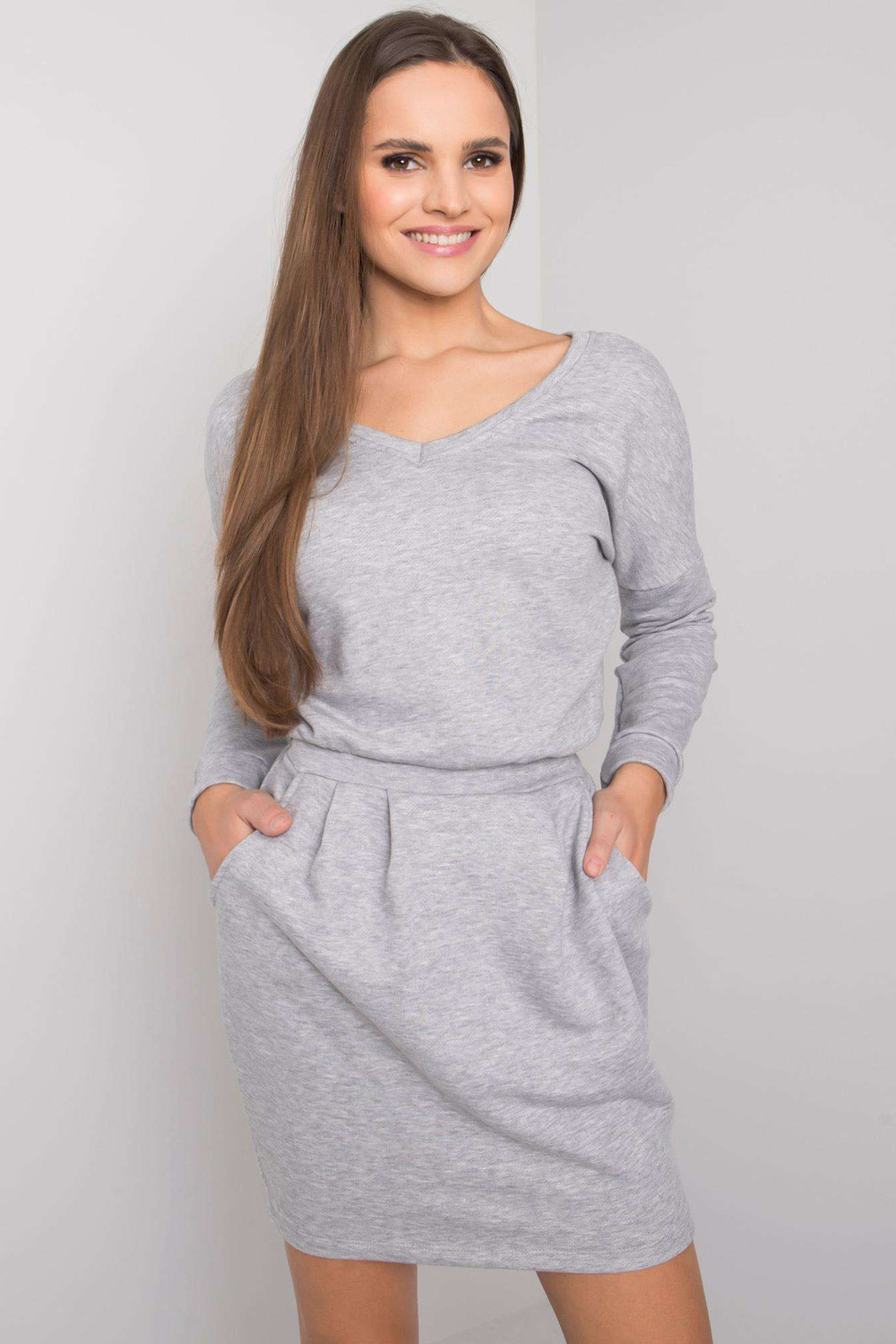 Greymelange kleita no Kloe RUE PARIS. piederumi: iesiešana, kabatas materiālssastāvs: 90% kokvilna, 10% elastāns mazgāšanas metode: mazgāšana veļasmašīnā 30°C Produkta kods: RV-SK-6037.18X dominējošais raksts: bez raksta Stils: ikdienišķs Gadījums: ikdienišķs, darbam, darbam