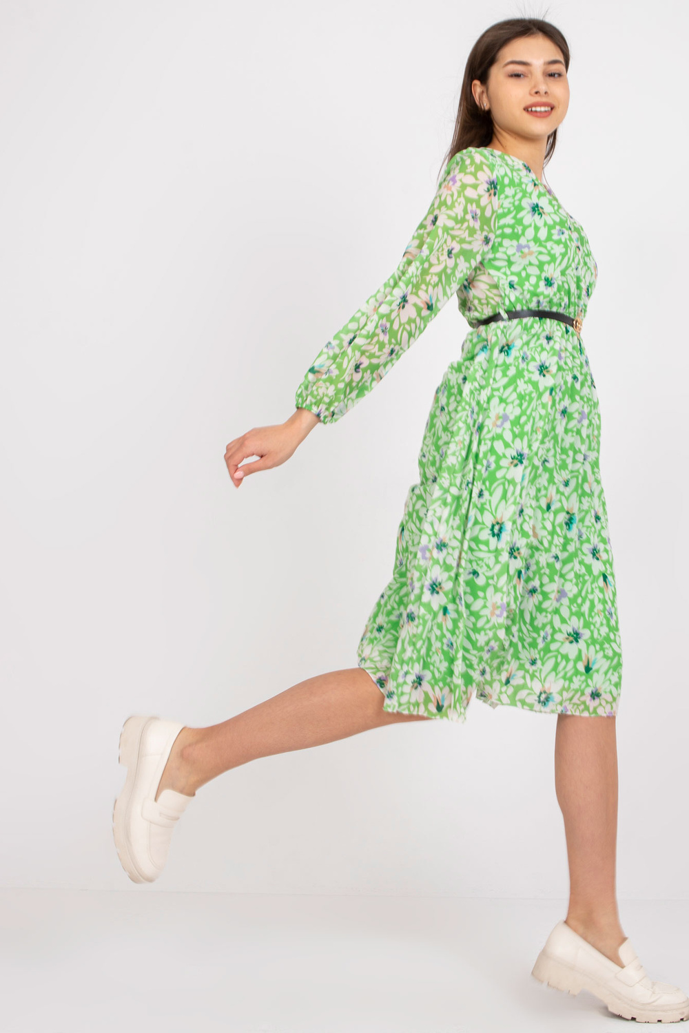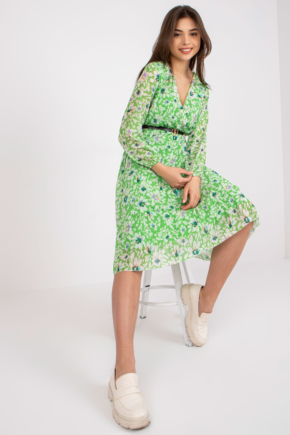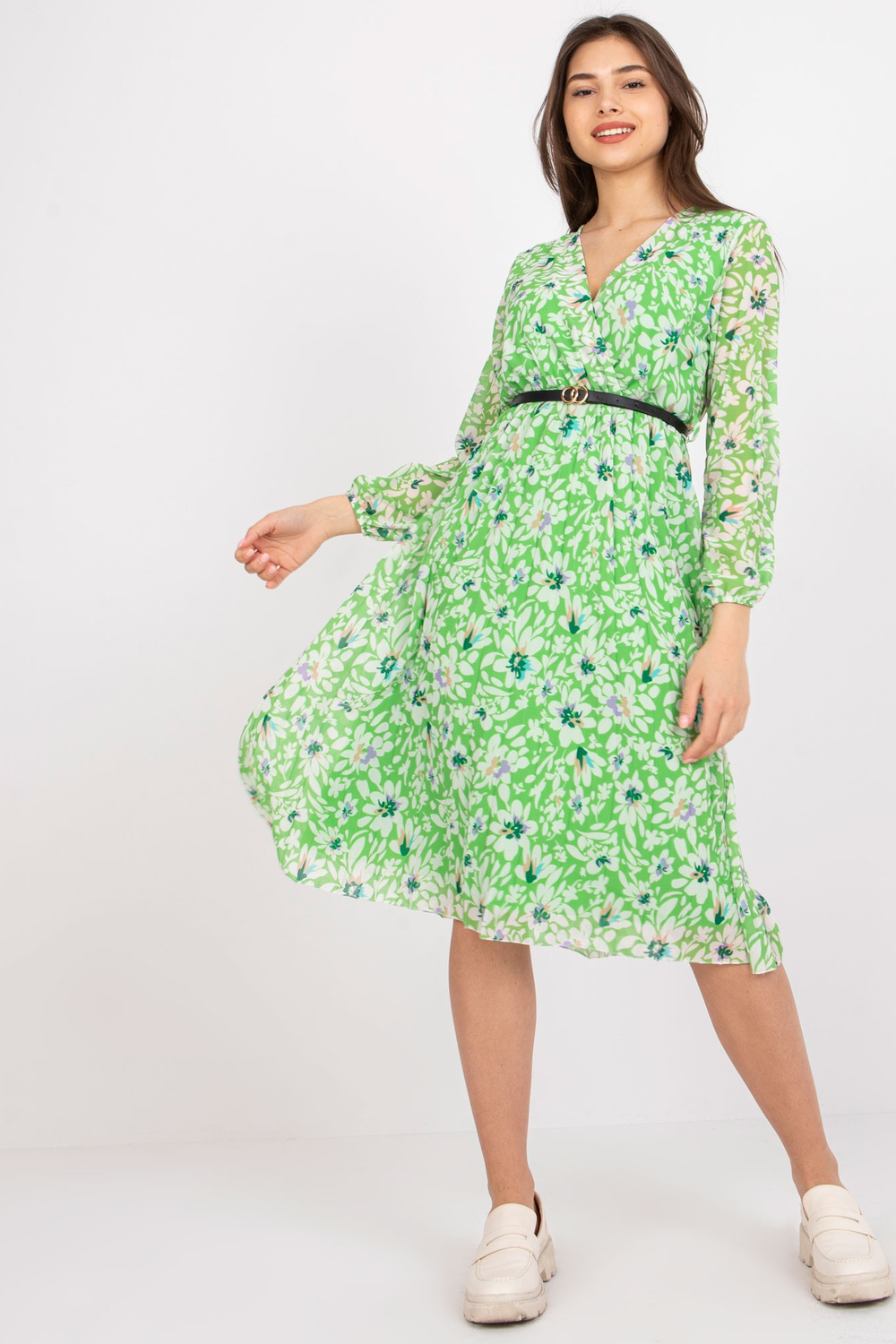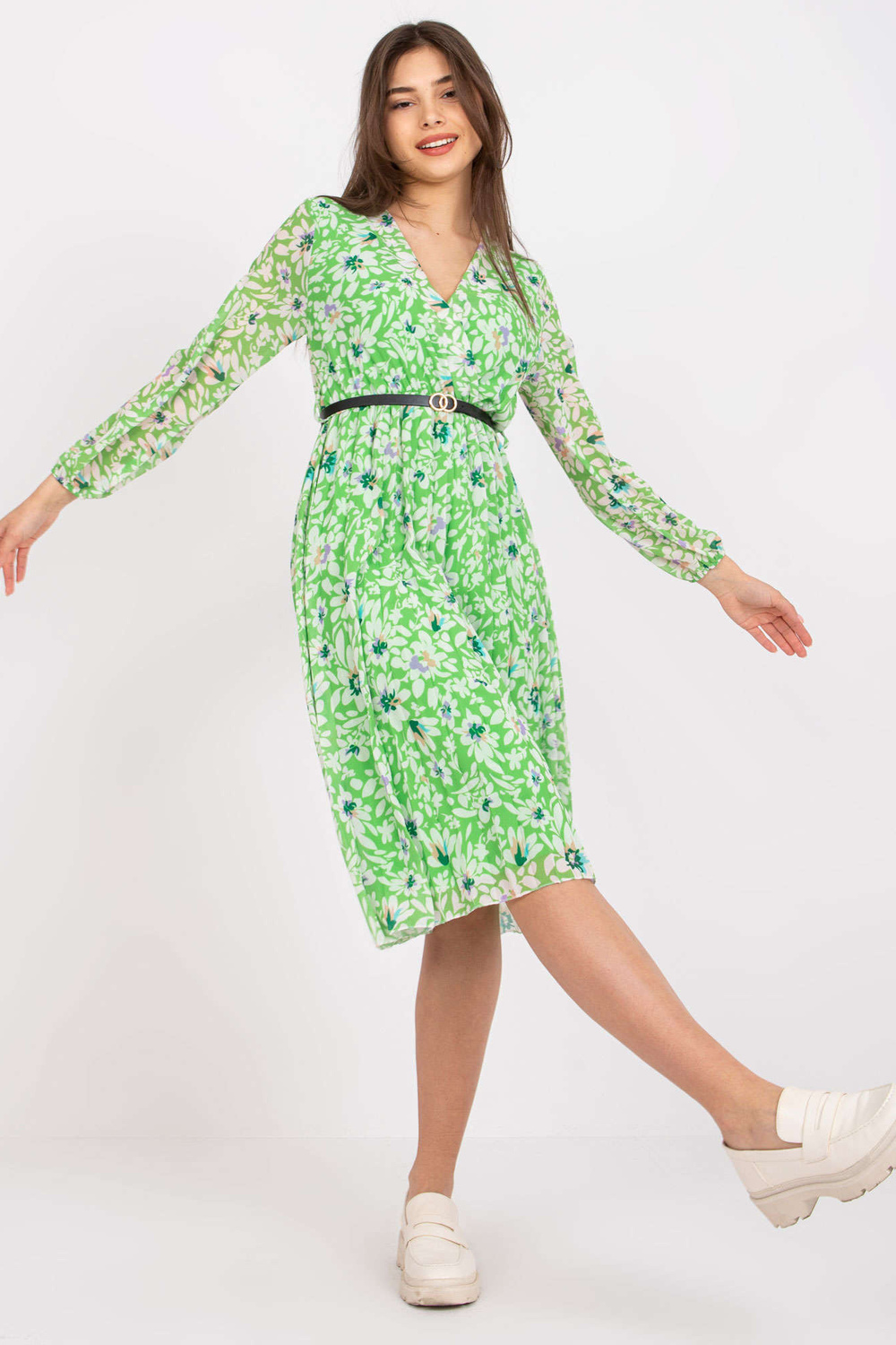 Gaiši zaļa Žironas puķaina midi ietīšanas kleita . aksesuāri: siksniņa, oderes materiālssastāvs: 50% poliesters, 45% viskoze, 5% elastāns mazgāšanas metode: veļas mašīna 30°C, ķīmiskā tīrīšana Produkta kods: DHJ-SK-10536A-1.80 dominējošais raksts: ziedi Stils: ikdienišķs oc