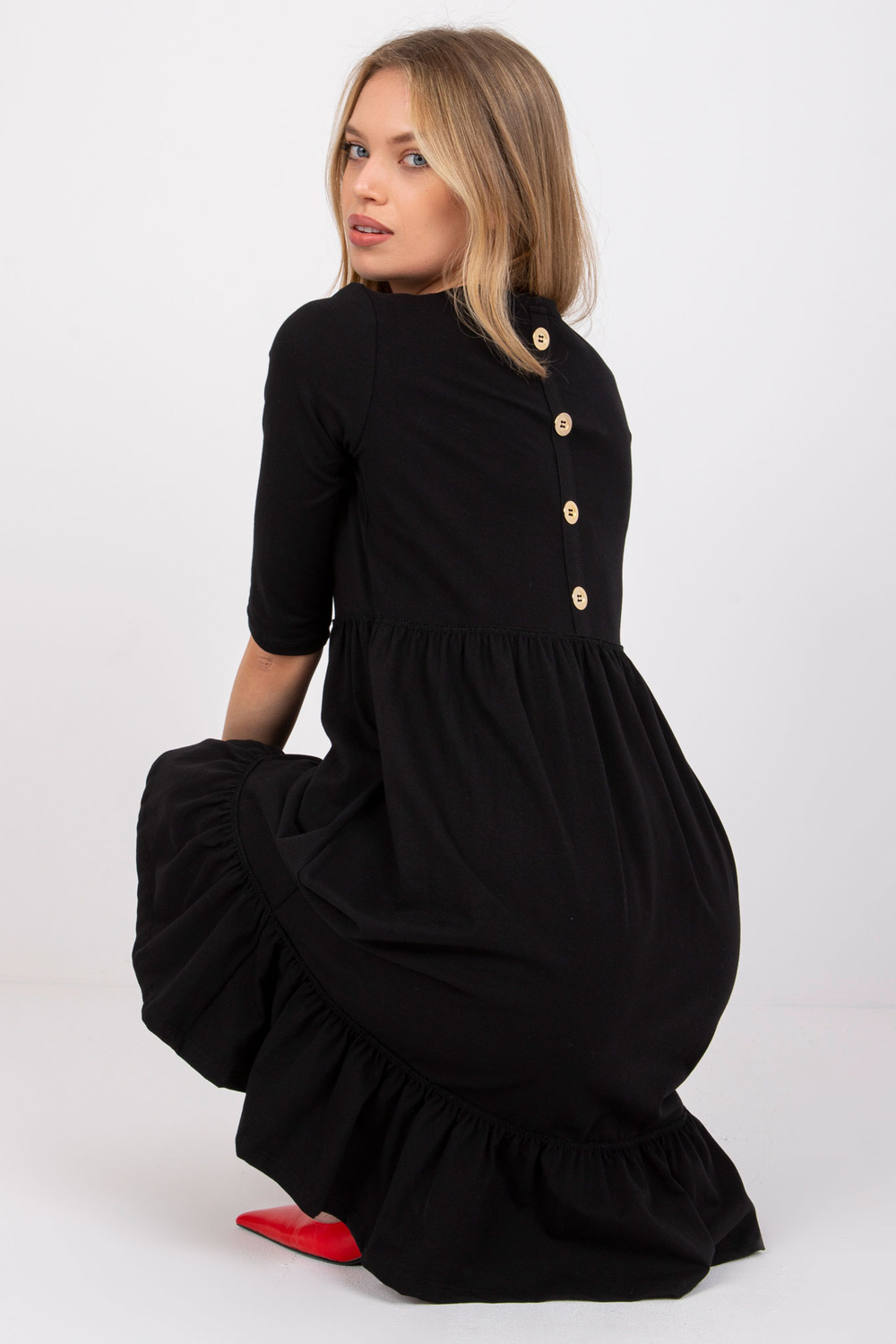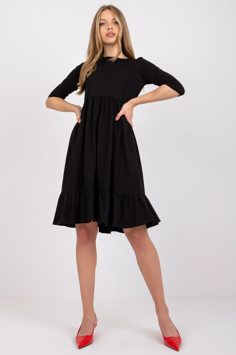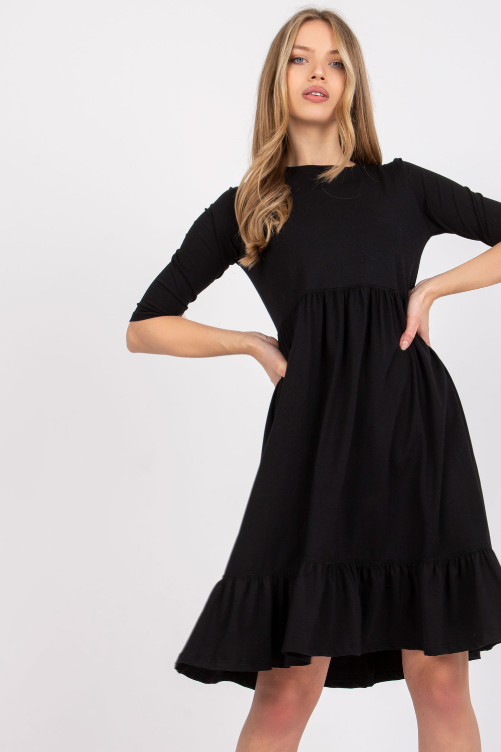 SurreyRUE PARIS melna kokvilnas kleita ar flīstu.