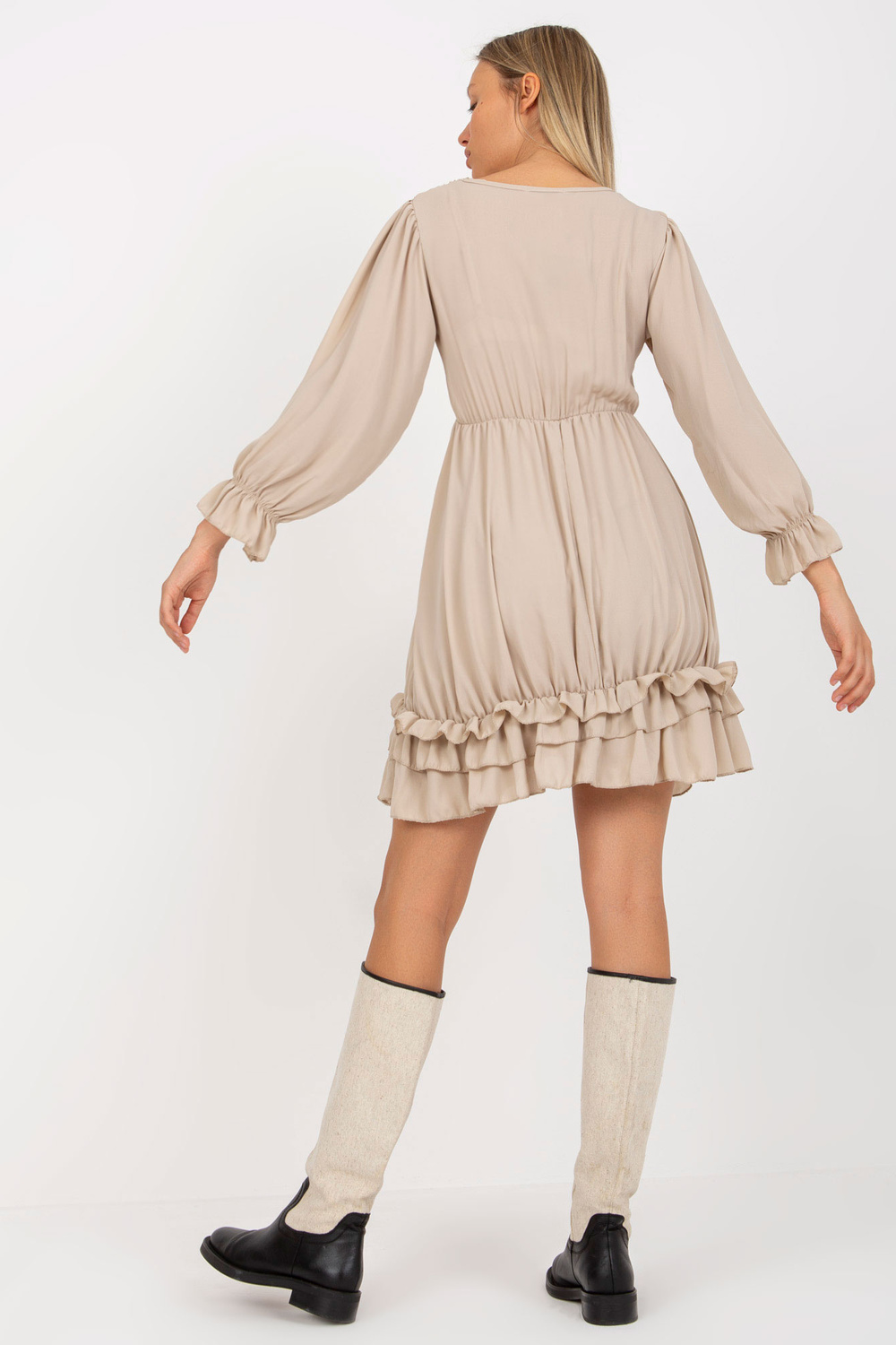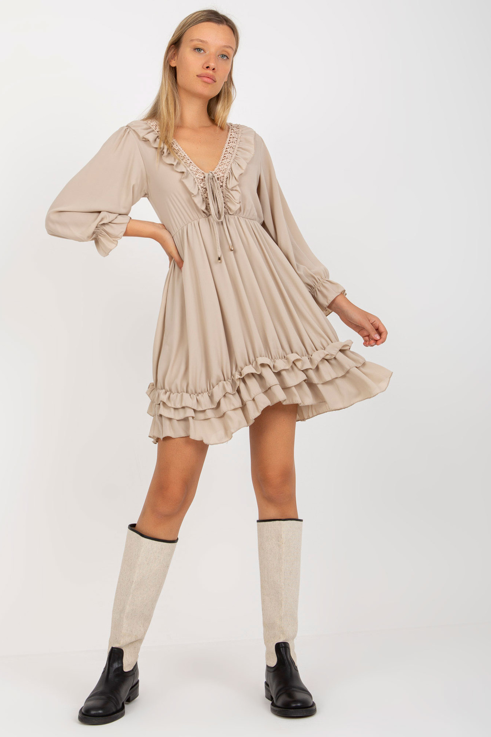 Bēša boho kleita ar volāniem un mezglotu kakla izgriezumu OCH BELLA
