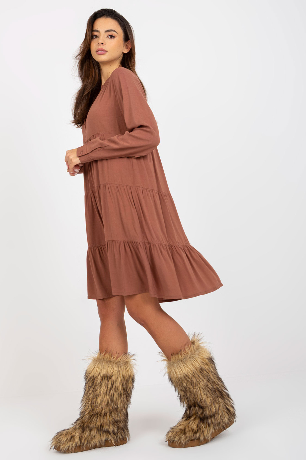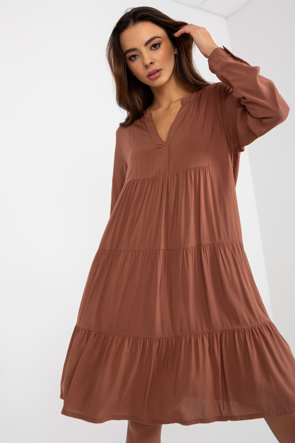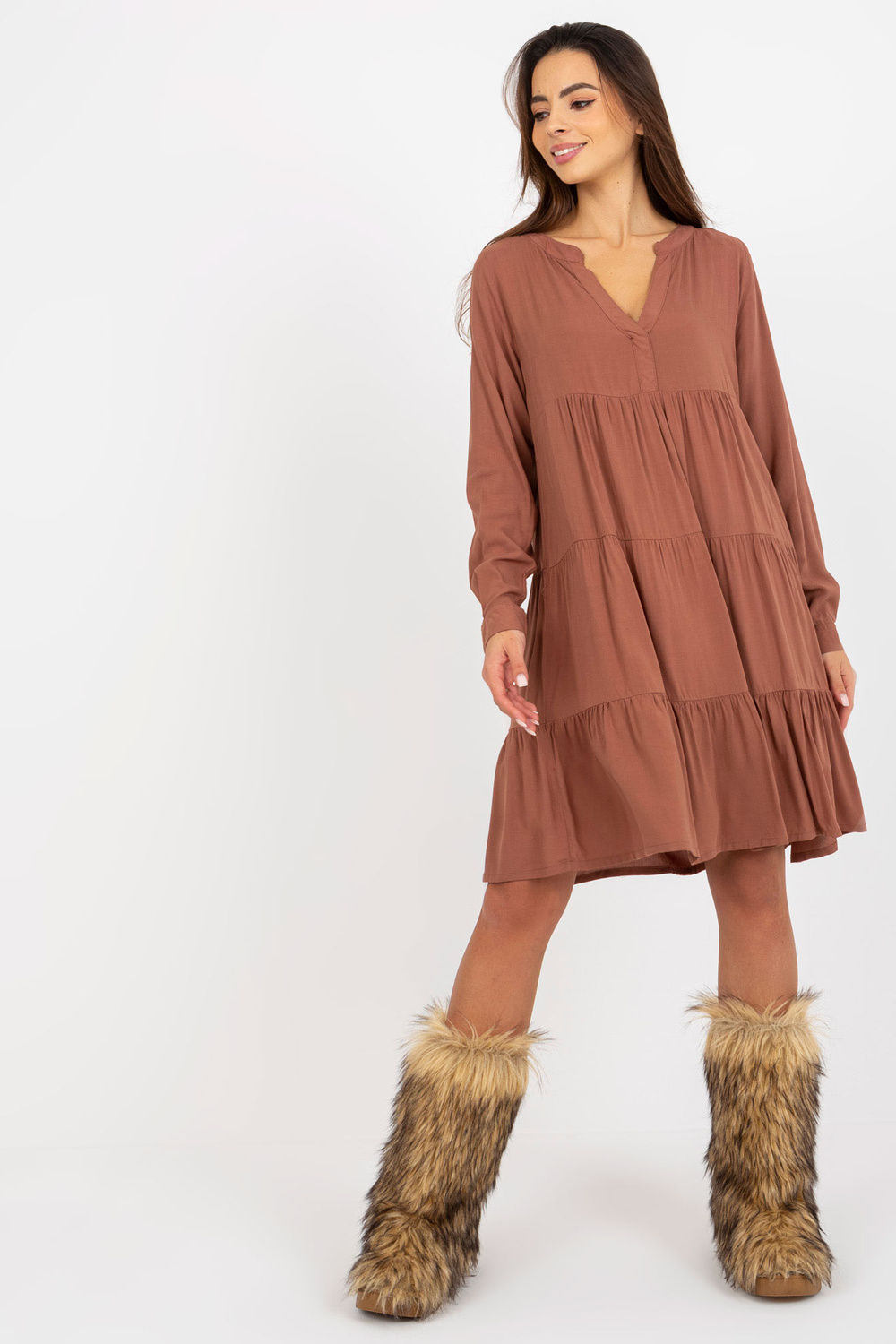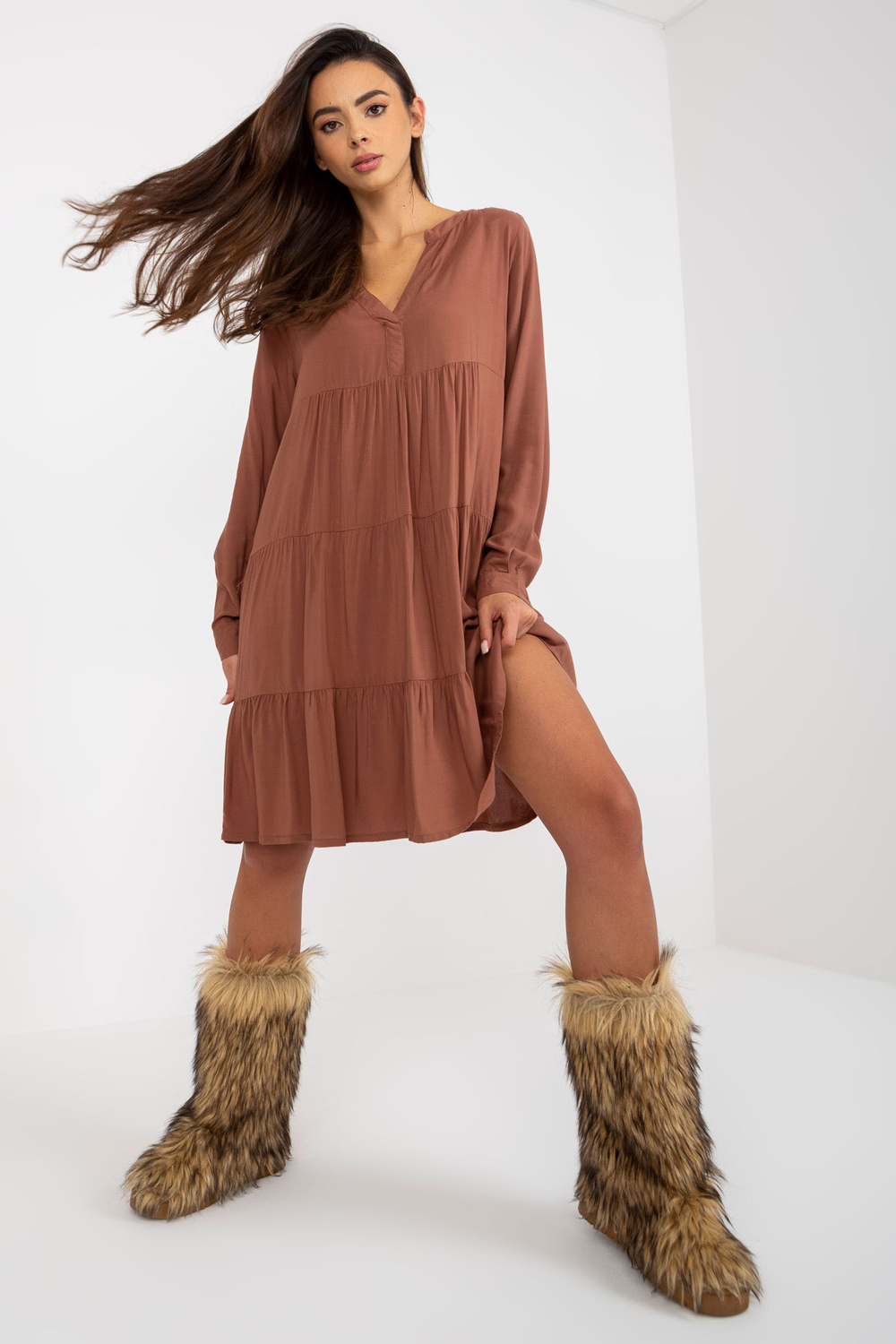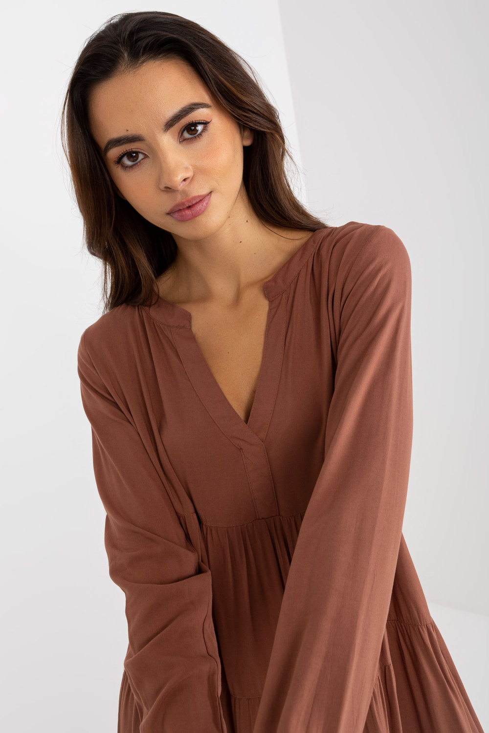 Brązowa boho sukienka z falbaną i dekoltem V SUBLEVEL