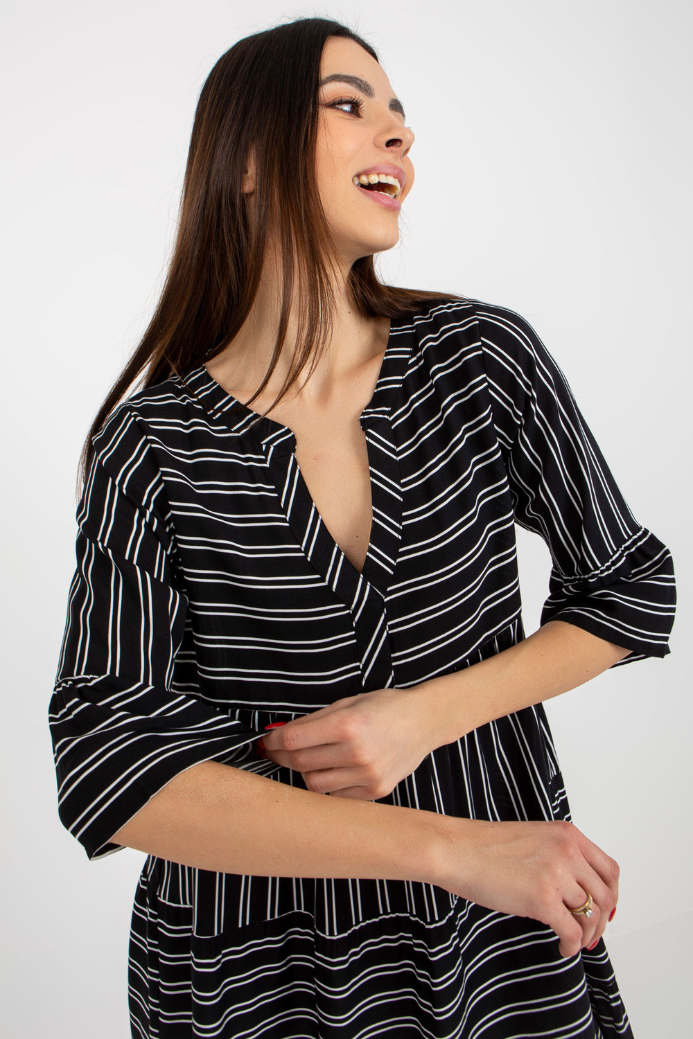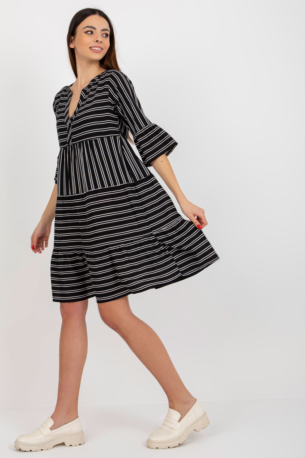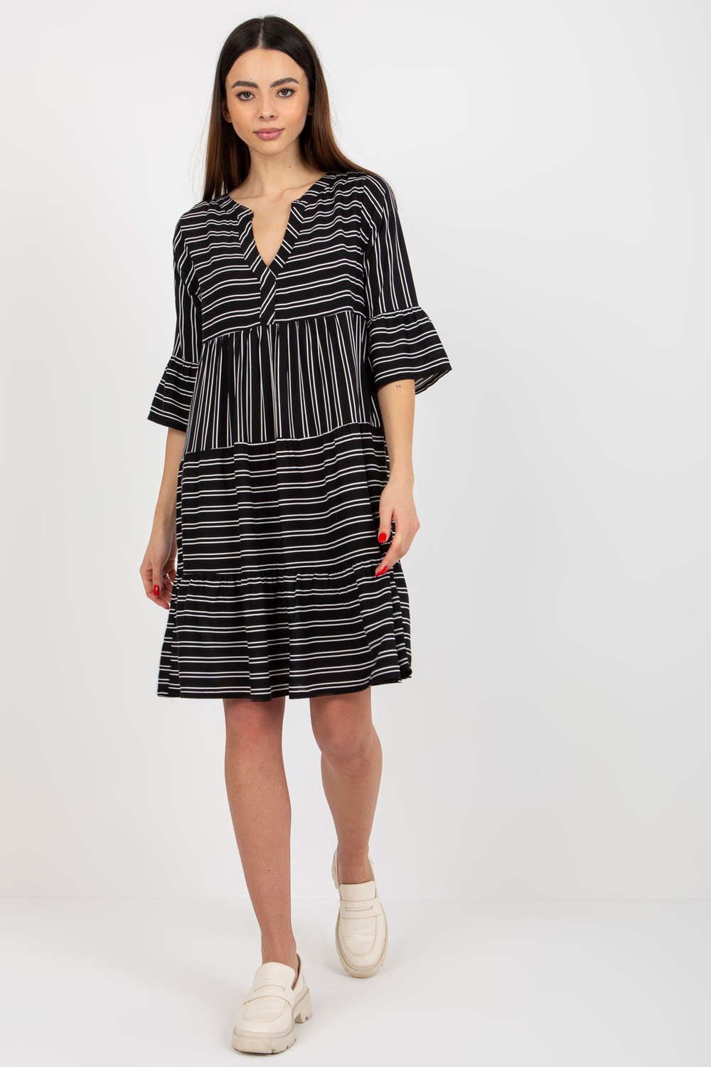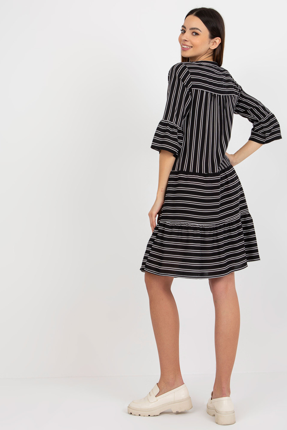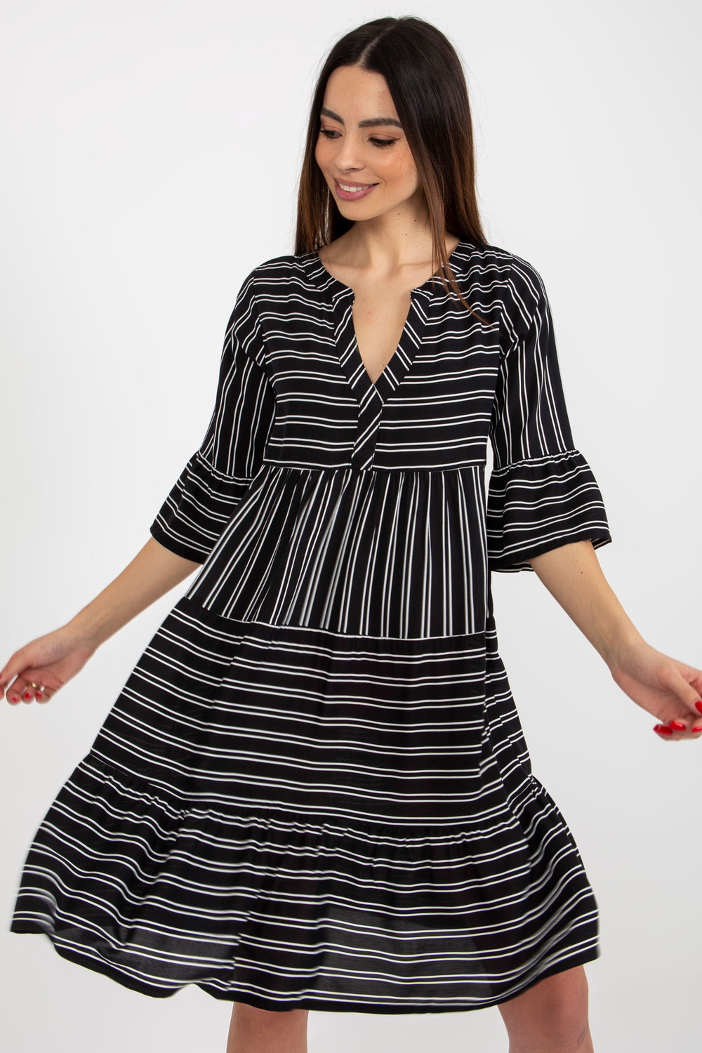 Melna brīva svītraina kleita ar volānu SUBLEVEL