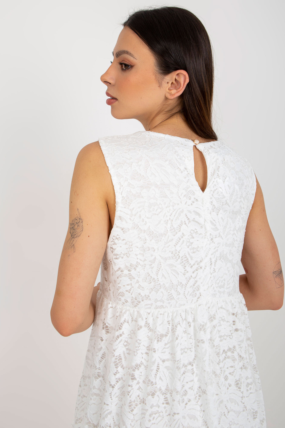 Modele valkā S izmēru. Modeles izmēri: augums 175 cm, krūtis 84 cm, viduklis 61 cm, gurni 91 cm