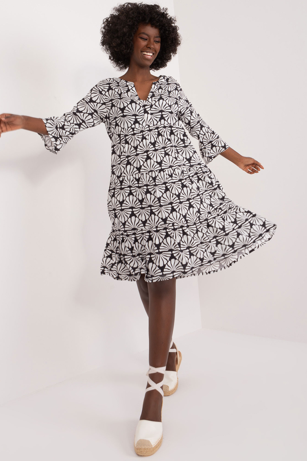 Kleitas izmēri S izmēram, mērot plakani: paduses platums - 50 cm, piedurknes garums - 38 cm, kopējais garums - 96 cm.