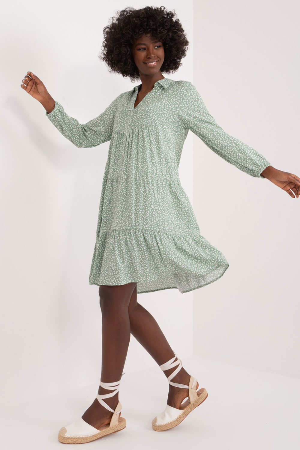 Kleitas izmēri S izmēram, mērot plakani: paduses platums - 50 cm, piedurknes garums - 49 cm, kopējais garums - 94 cm.