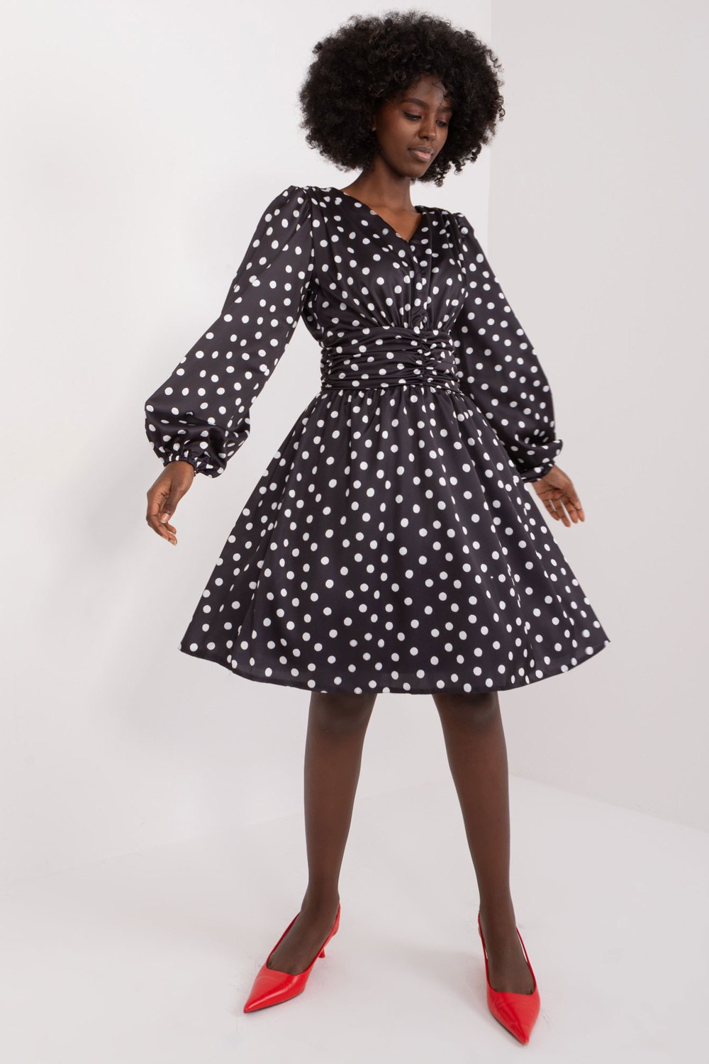Kleitas izmēri S izmēram, mērot plakani: paduses platums - 48 cm, piedurknes garums - 58 cm, kopējais garums - 94 cm