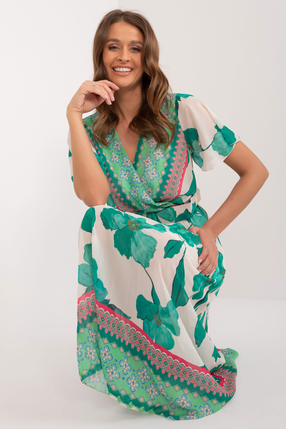 Kleitas izmēri viena izmēra izmērā, mērot plakani: paduses platums - 45 cm, kopējais garums - 122 cm, piedurkņu garums - 22 cm