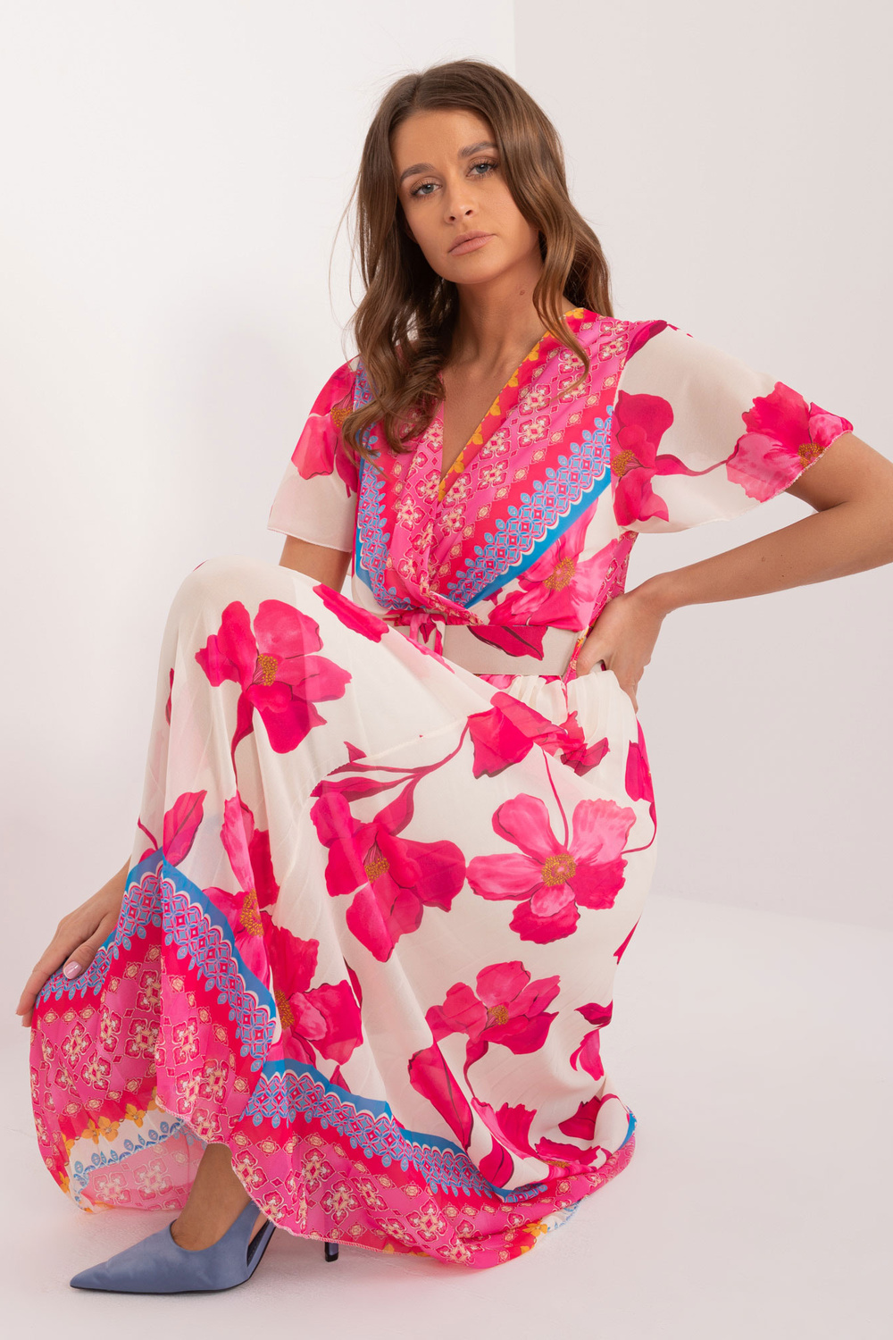 Modele valkā viena izmēra izmēru. Modeļa izmēri: augums 176 cm, krūtis 85 cm, viduklis 64 cm, gurni 92 cm.