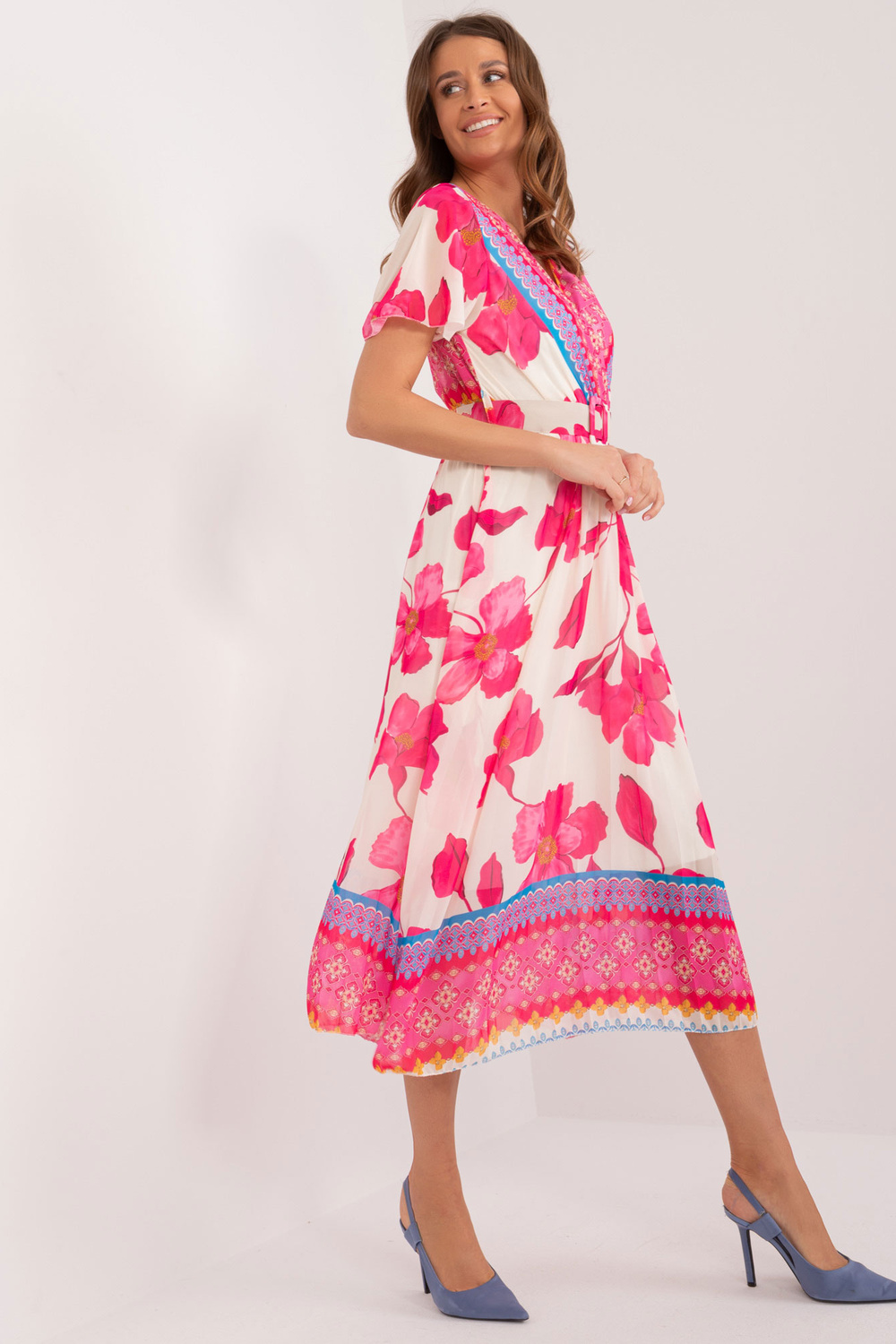 Viena izmēra kleitas izmēri mērīti plakanā stāvoklī: paduses platums - 45 cm, kopējais garums - 122 cm, piedurkņu garums - 22 cm