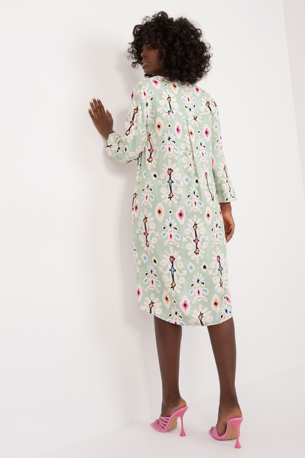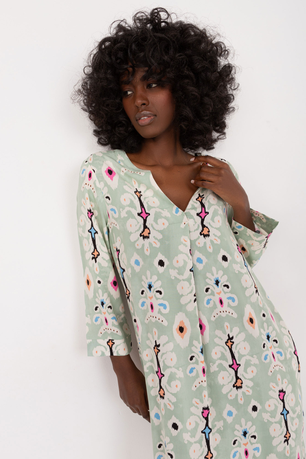 Kleitas izmēri S izmēram, mērot plakani: paduses platums - 48 cm, piedurknes garums - 50 cm, kopējais garums - 103 cm.