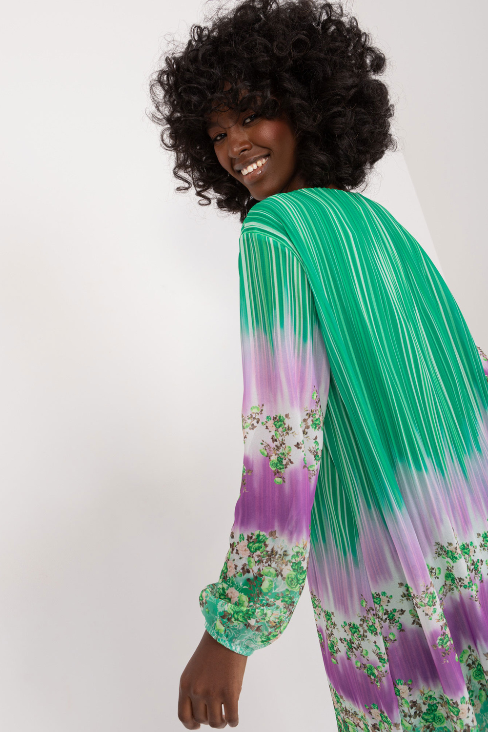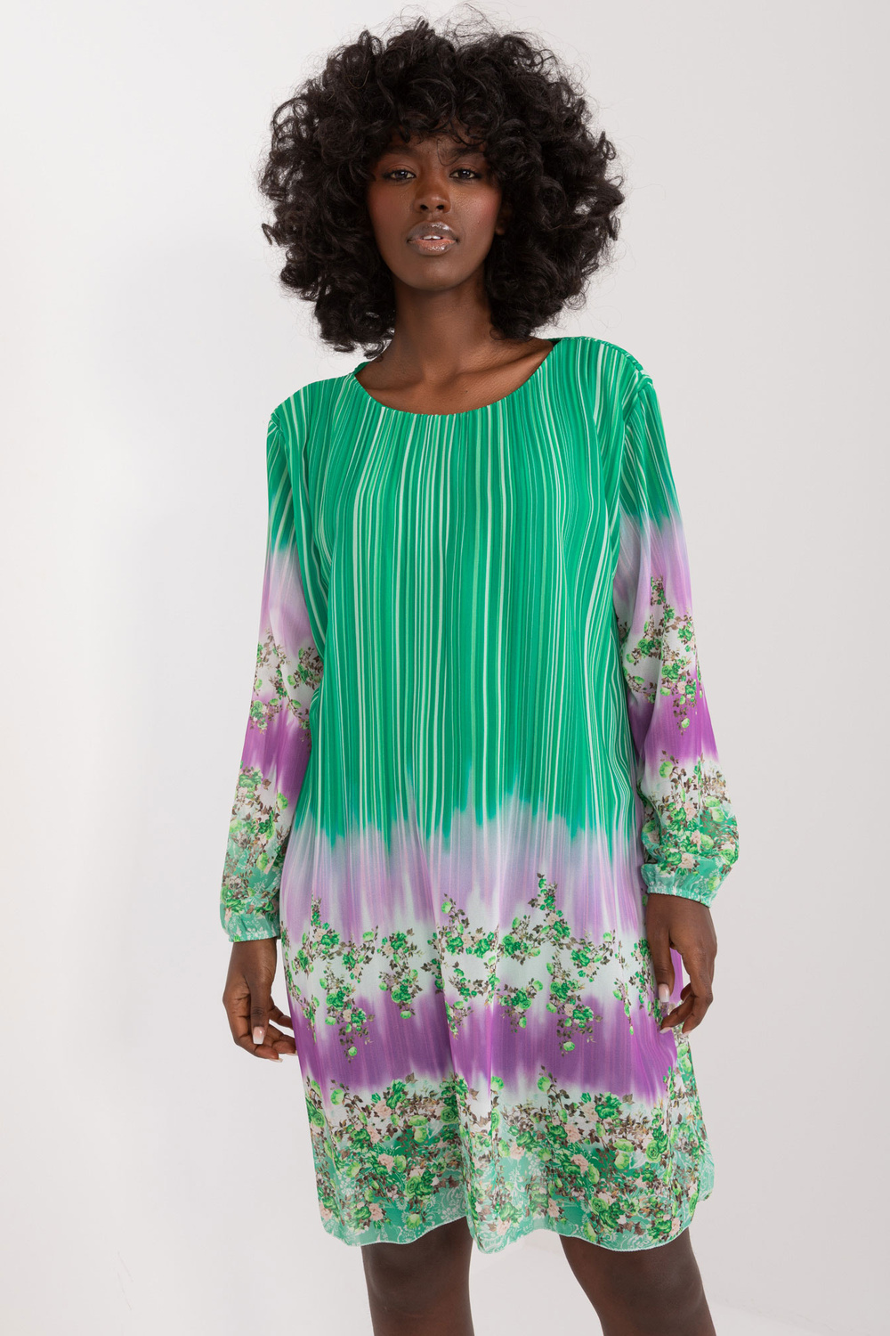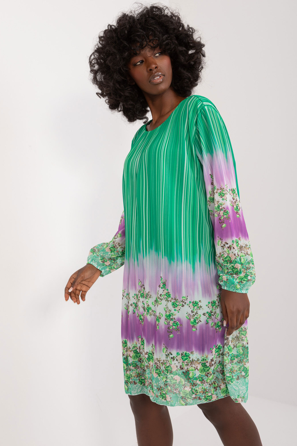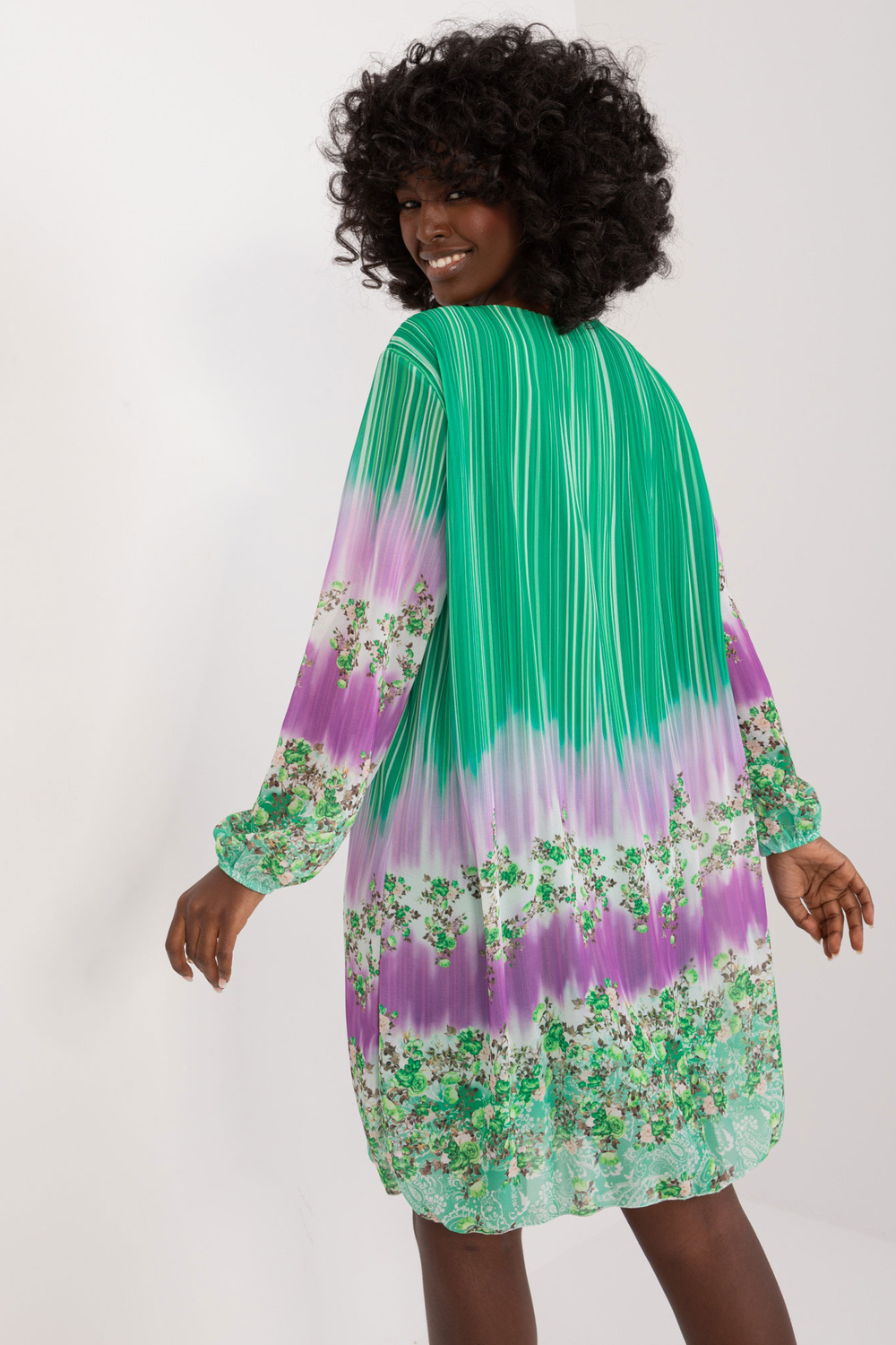 Viena izmēra kleitas izmēri mērīti plakanā stāvoklī: paduses platums - 52 cm, piedurkņu garums - 54 cm, kopējais garums - 86 cm.