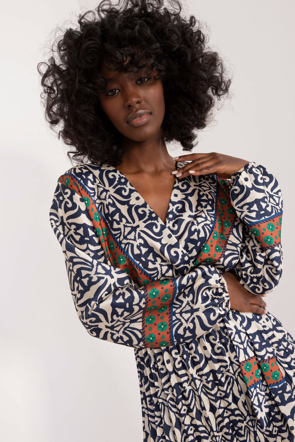 Viena izmēra kleitas izmēri mērīti plakaniski: paduses platums - 39 cm, piedurkņu garums - 57 cm, kopējais garums - 136 cm.
