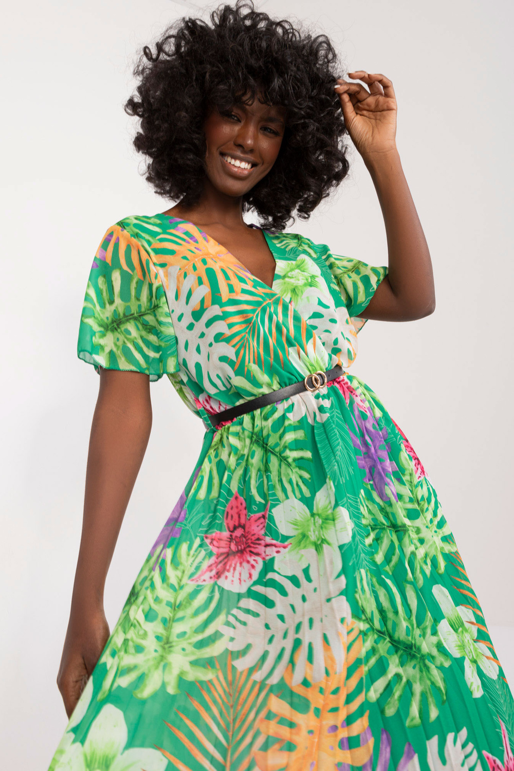 Modele valkā viena izmēra izmēru. Modeļa izmēri: augums 168 cm, krūtis 82 cm, viduklis 62 cm, gurni 93 cm