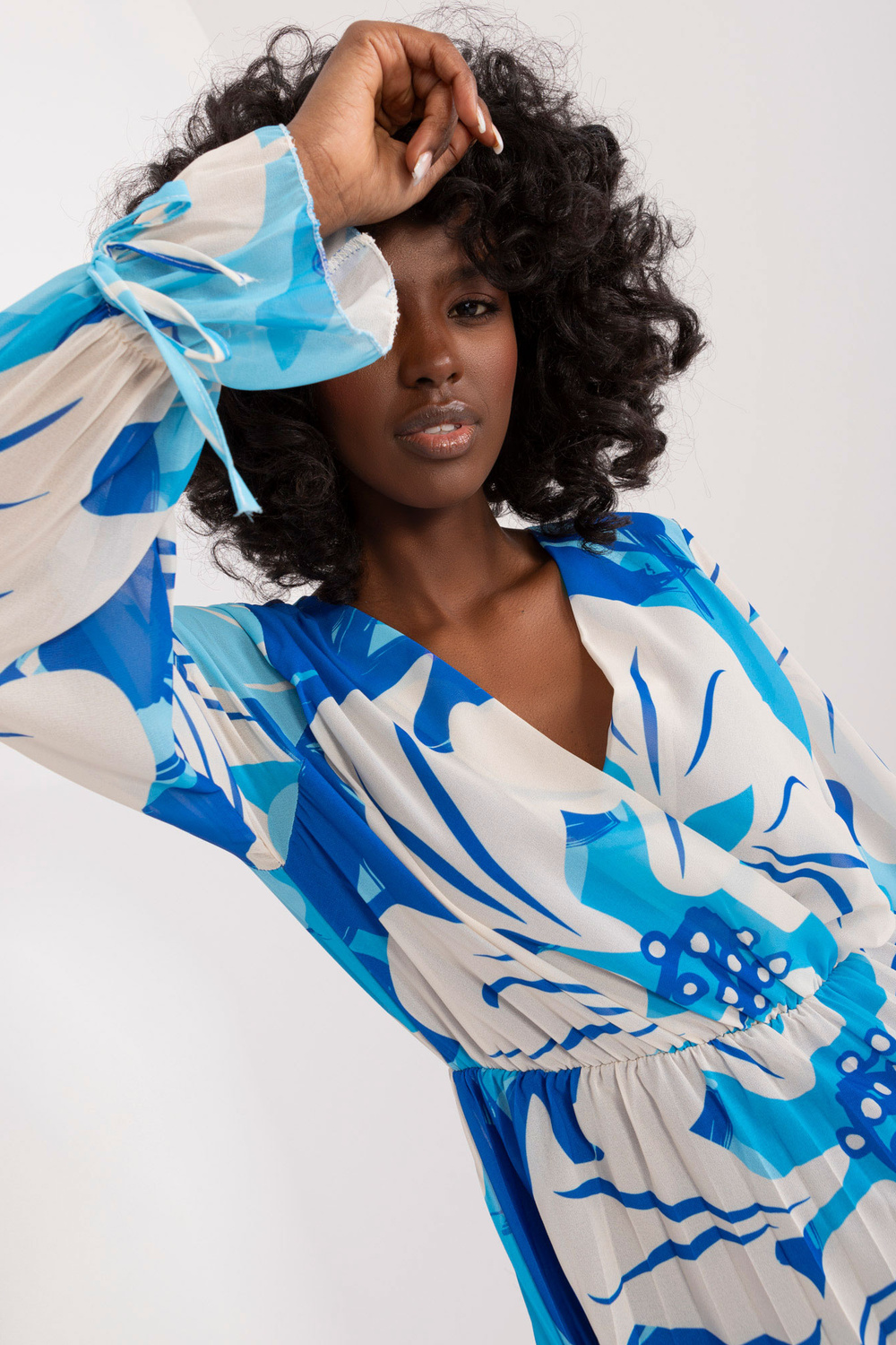 Modele valkā viena izmēra izmēru. Modeļa izmēri: augums 168 cm, krūtis 82 cm, viduklis 62 cm, gurni 93 cm