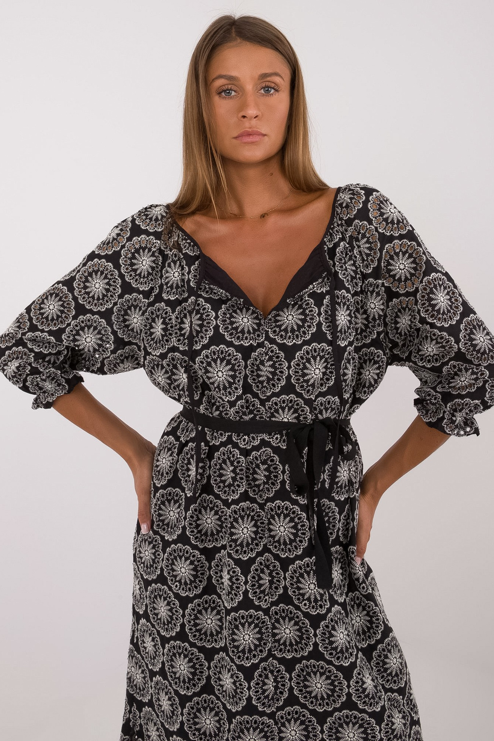 Kleitas izmēri S/M izmērā mērot plakani: paduses platums - 58 cm, piedurknes garums - 44 cm, kopējais garums - 133 cm.